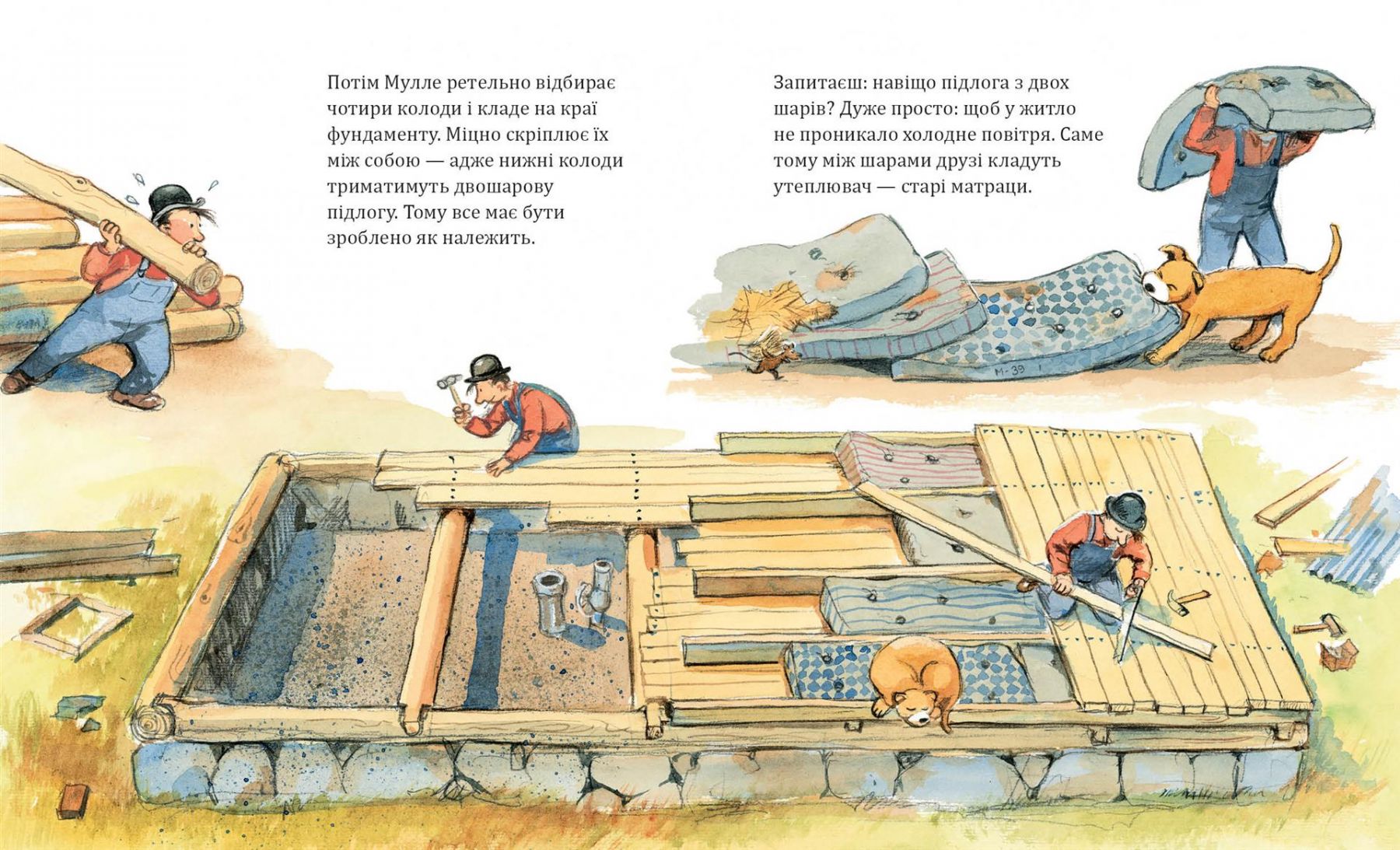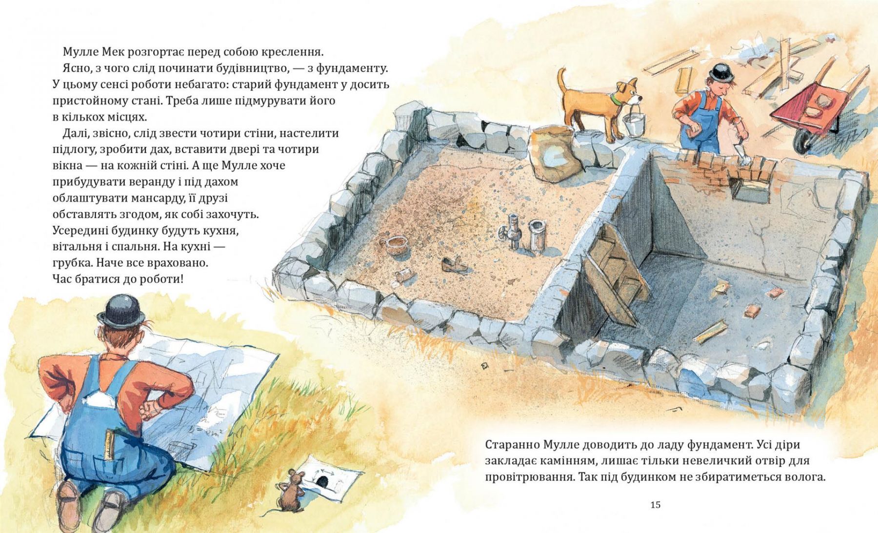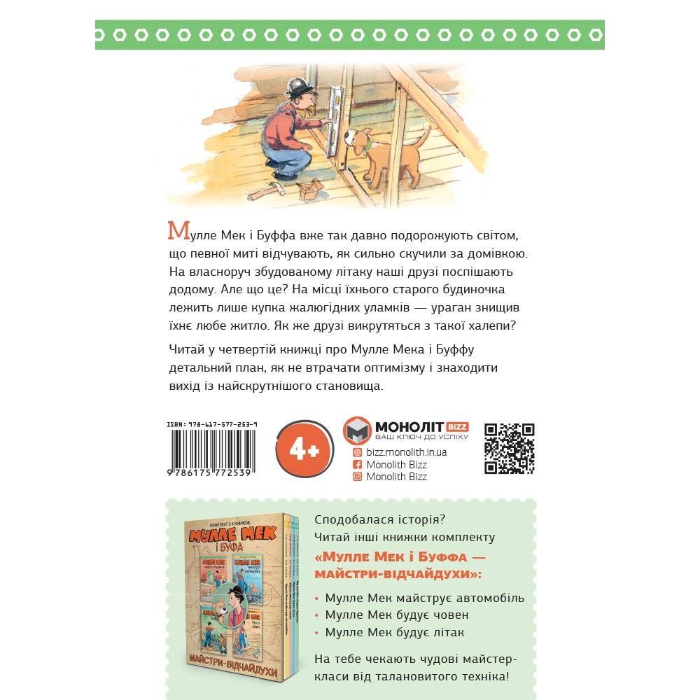 Хоч би куди ти помандрував, невдовзі тебе потягне до рідного дому. Так сталося і з героями захопливої дитячої книжечки «Мулле Мек зводить будинок». Нарешті наші мандрівники — майстер на всі штуки Мулле і його кмітлива собака Буффа — повернулися додому. Але їхнього будиночка немає — його вщент зруйнувало дерево, що впало під натиском вітру! Довелося будувати заново…