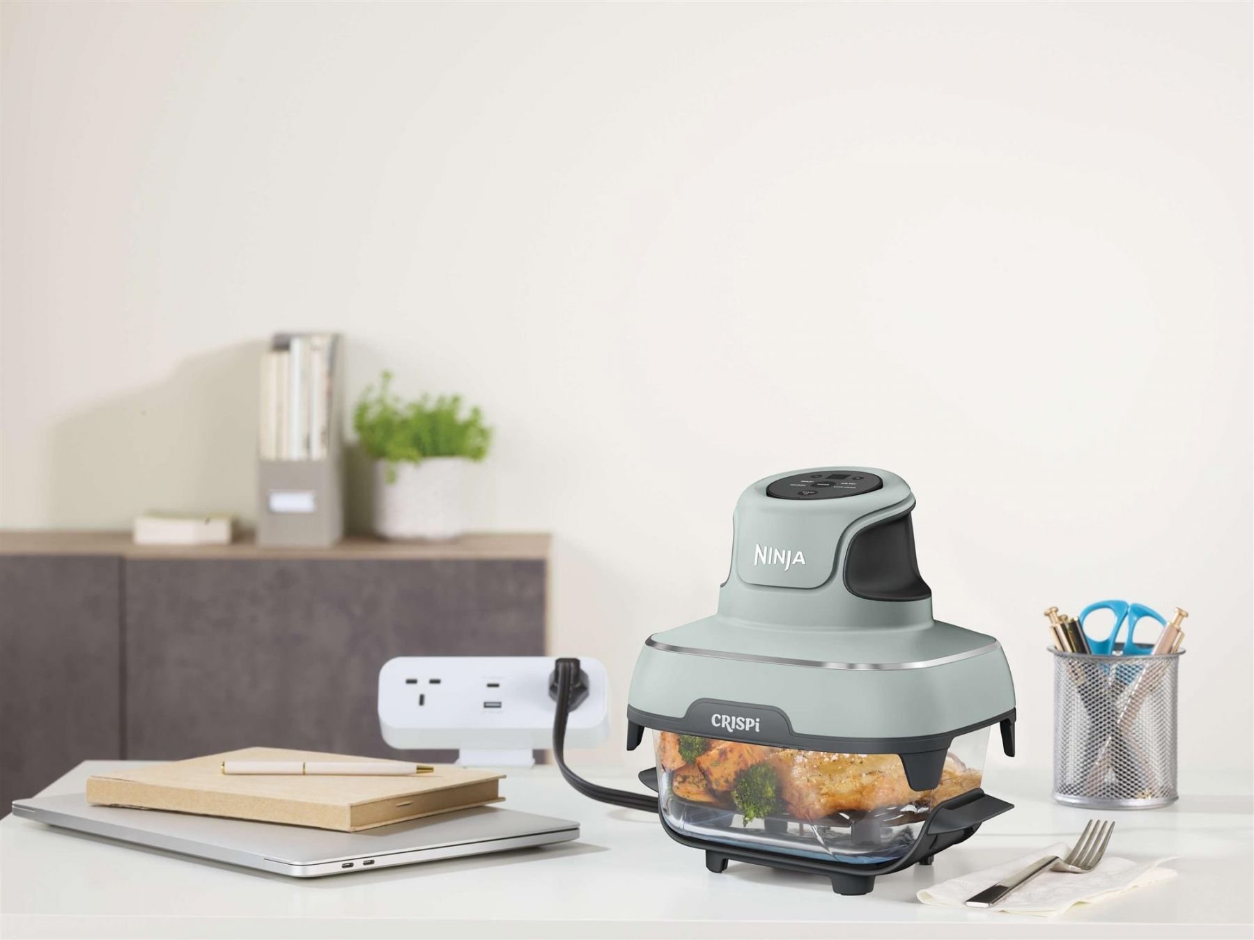 Щоденне використання мультипечі Ninja Crispi FN101EUSG полегшує дотримання здорового, поживного раціону щодня. Тому що вдома можна приготувати свіжу порцію, а на роботу чи спортзал взяти поживний перекус із собою. Ергономічні ручки дозволяють відразу подавати блюдо на стіл, а спеціальна кришка на маленькому контейнері перетворює його на герметичну ємність для зберігання. Всі деталі підходять для миття в посудомийній машині, тому прибирання займає лічені хвилини. Термостійкі ніжки та захисні елементи гарантують безпеку на будь-якій поверхні та навіть у складі вашої страви. Коли пристрій не використовується, його можна компактно скласти для організації простору навіть на маленькій кухні.