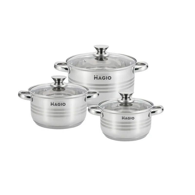 Набір каструль Magio MG-1200 складається із 6 предметів. Посуд виготовлений з якісної нержавіючої сталі, а кришки з термостійкого скла. Багатошарове дно забезпечує рівномірний розподіл тепла.