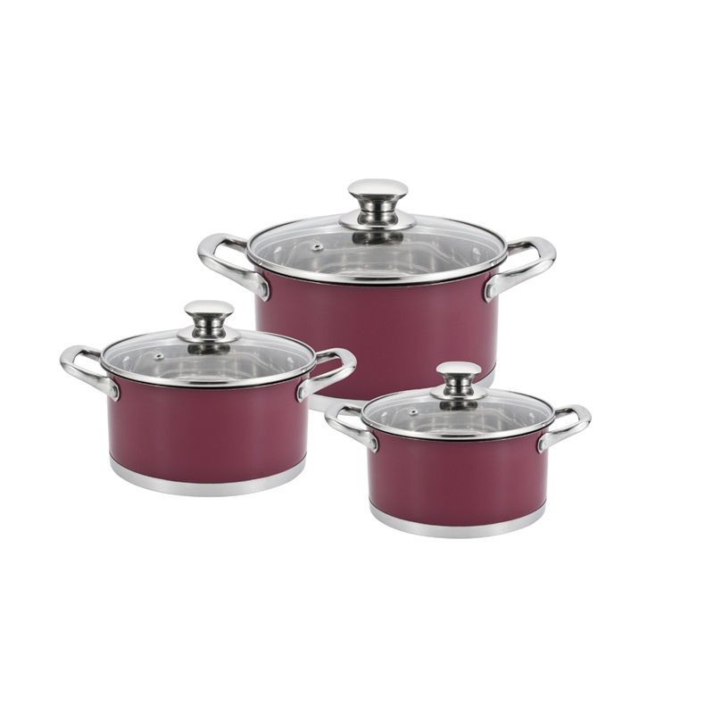 Входить до комплекту:каструля з кришкою 18 см (2,6 л), каструля з кришкою 20 см (3,6 л), каструля з кришкою 24 см (6,1 л)