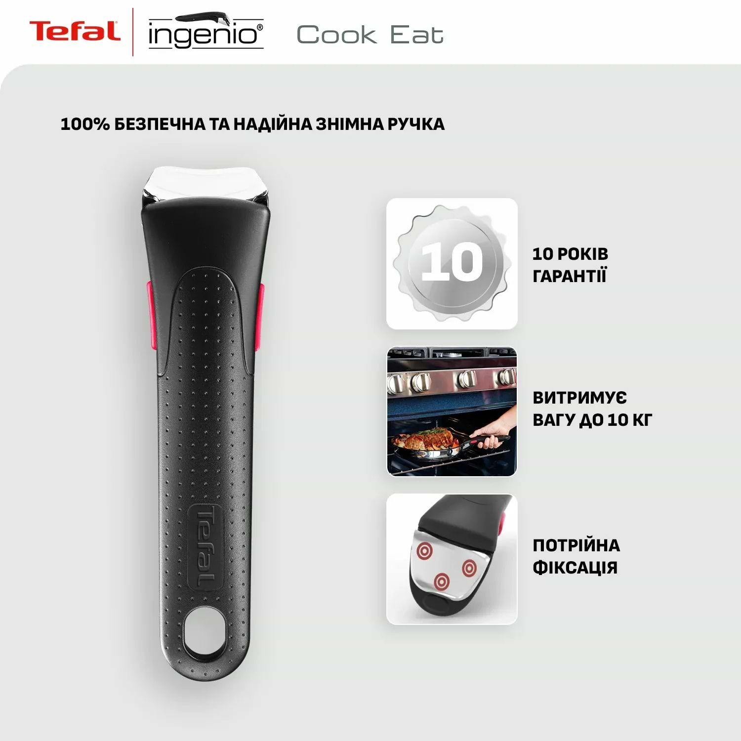 Міцна знімна ручка Ingenio створена для довговічності та має 10-річну гарантію.