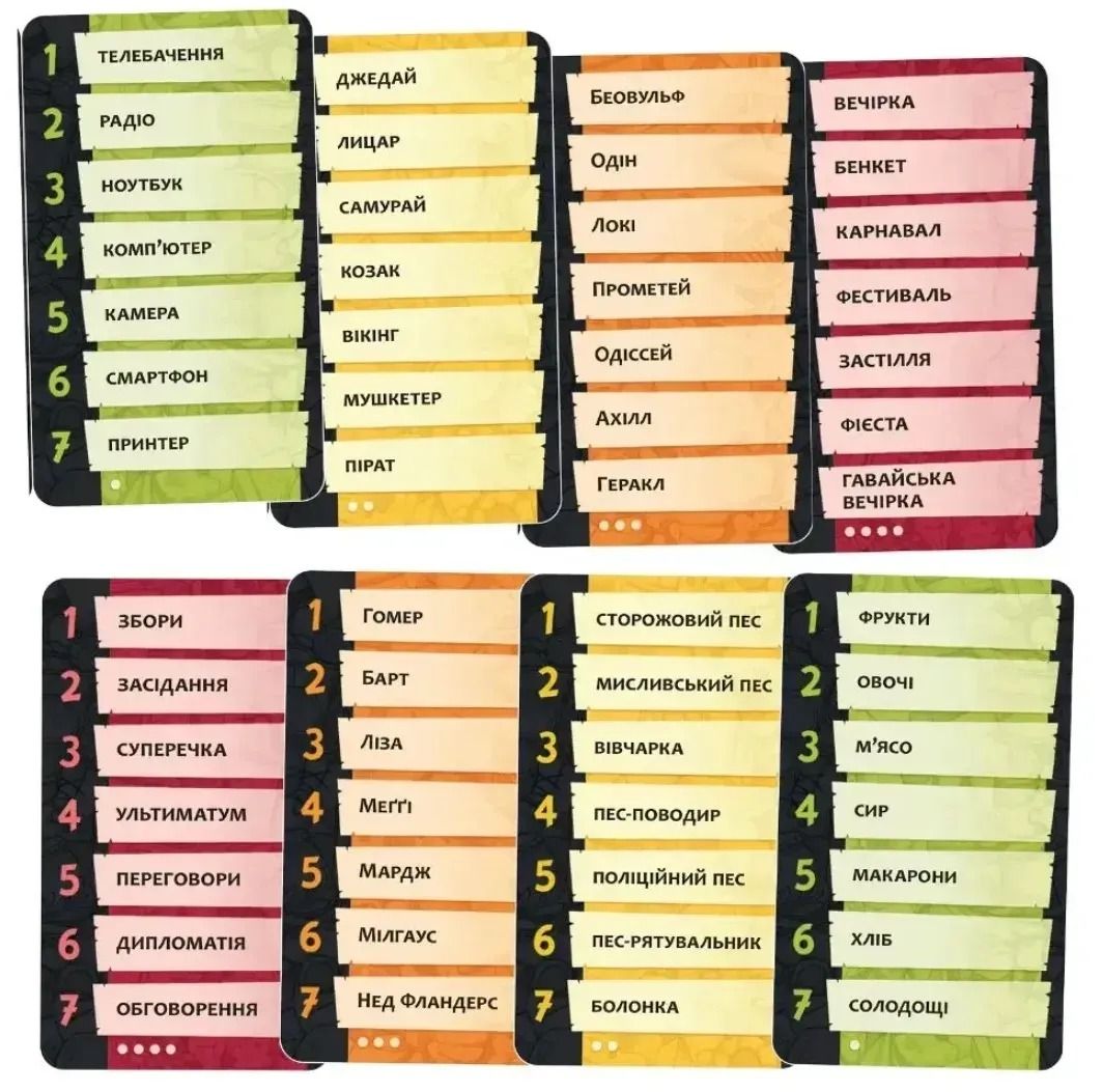 Під час кожного з чотирьох раундів картки із завданнями міститимуть більш каверзні та заплутані слова, аби потроху підігрівати складність та інтерес у партії. Разом з тим, якщо ви хочете пограти з малими дітками, аби привити їм любов до малювання в ігровій формі – можна використовувати лише картки простого рівня.