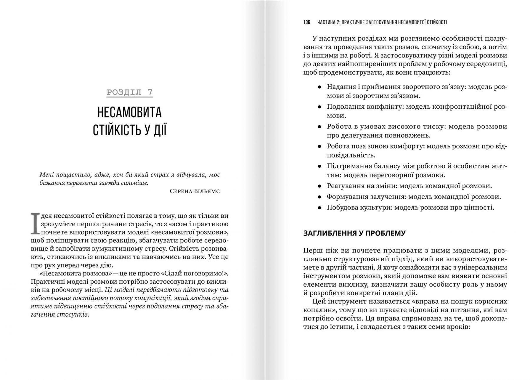 - Практичну модель стійкості: дієві кроки для подолання стресу через самосвідомість і ефективні розмови.