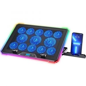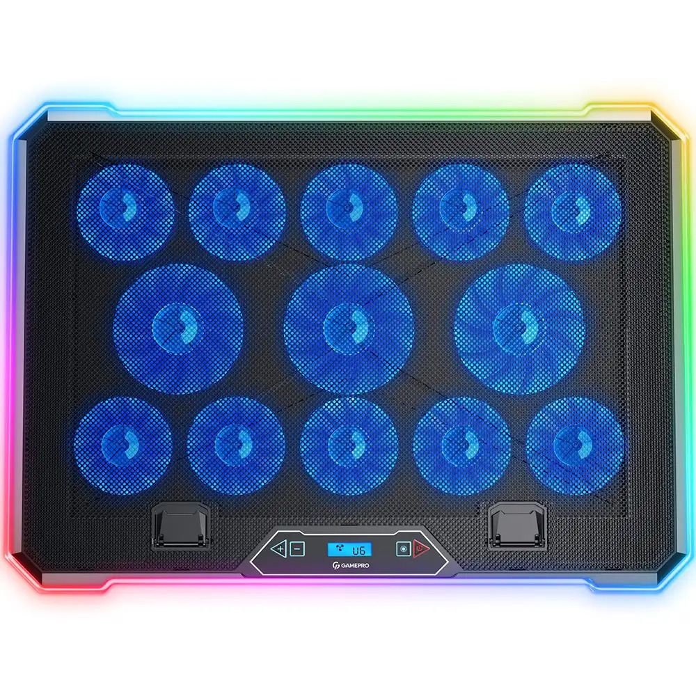 Охолодна підставка Gamepro CP1090 обладнана безпрецедентною кількістю вентиляторів: 10 вентиляторів розміром 60 х 60 х 15 мм, що працюють на швидкості 2550 об/хв, і 3 вентилятори розміром 80 х 80 х 10 мм зі швидкістю 17 потягів.
