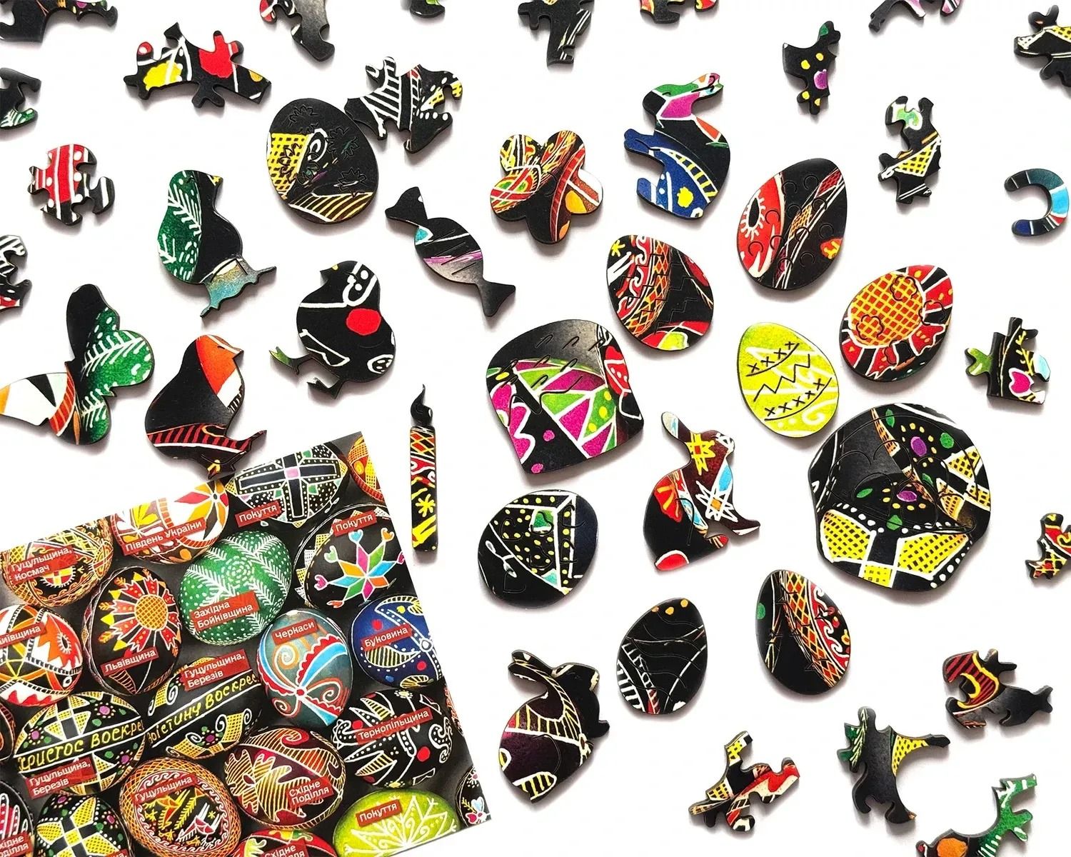 Складання цього пазлу – це не лише приємний процес, а й спосіб уважно розглянути візерунки, особливості різних стилів та орнаментів з різних куточків України. Різноманітні форми елементів, серед яких є великодні символи, роблять процес складання ще більш захопливим.