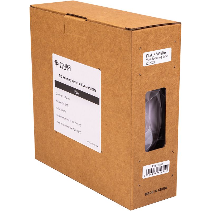 PLA-пластик PowerPlant Filament для 3D-принтера 1.75 мм 1 кг, білий (PT812950)