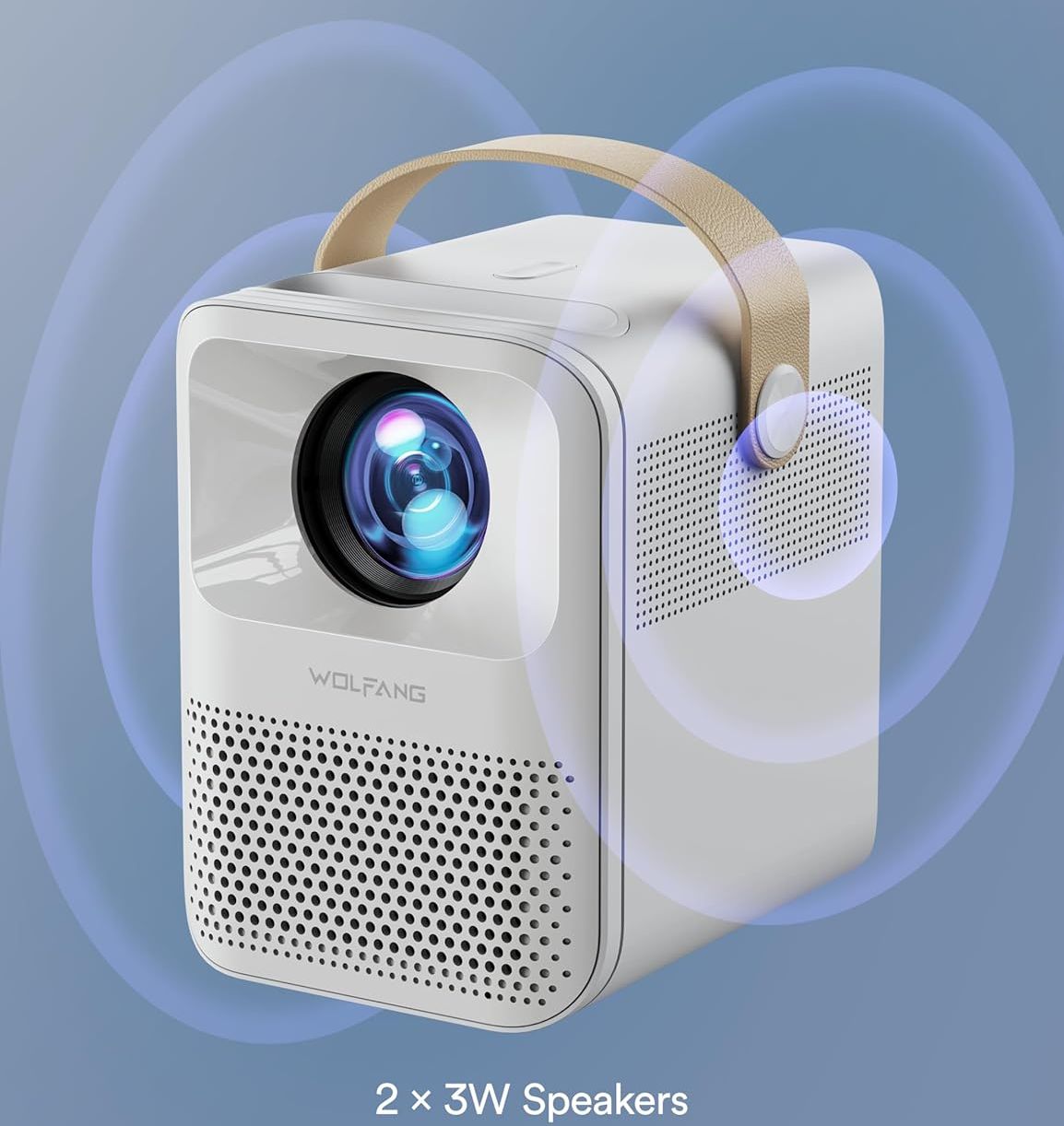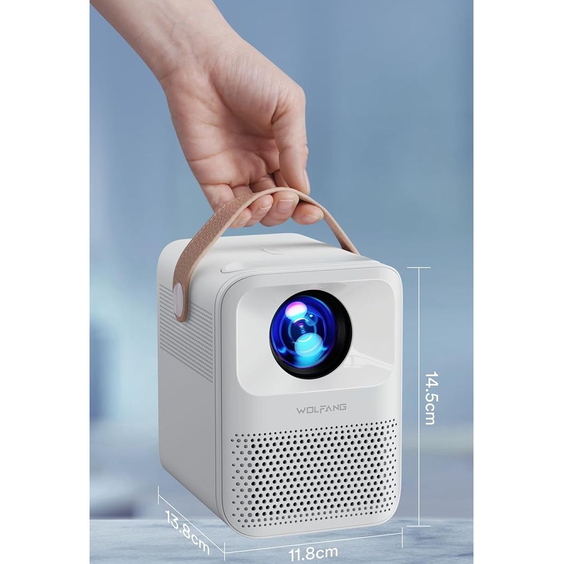 Проектор WOLFANG WP01 має компактні розміри важить лише 1 кг, що робить його зручним для транспортування. Завдяки унікальній ручці його можна переносити однією рукою, що значно спрощує використання в дорозі. Енергоефективність також є великою перевагою – споживана потужність становить лише 55 Вт, що робить пристрій екологічно чистим та економним. Завдяки ефективній системі розсіювання тепла він залишається охолодженим навіть під час тривалого використання, забезпечуючи стабільну роботу без перегріву.