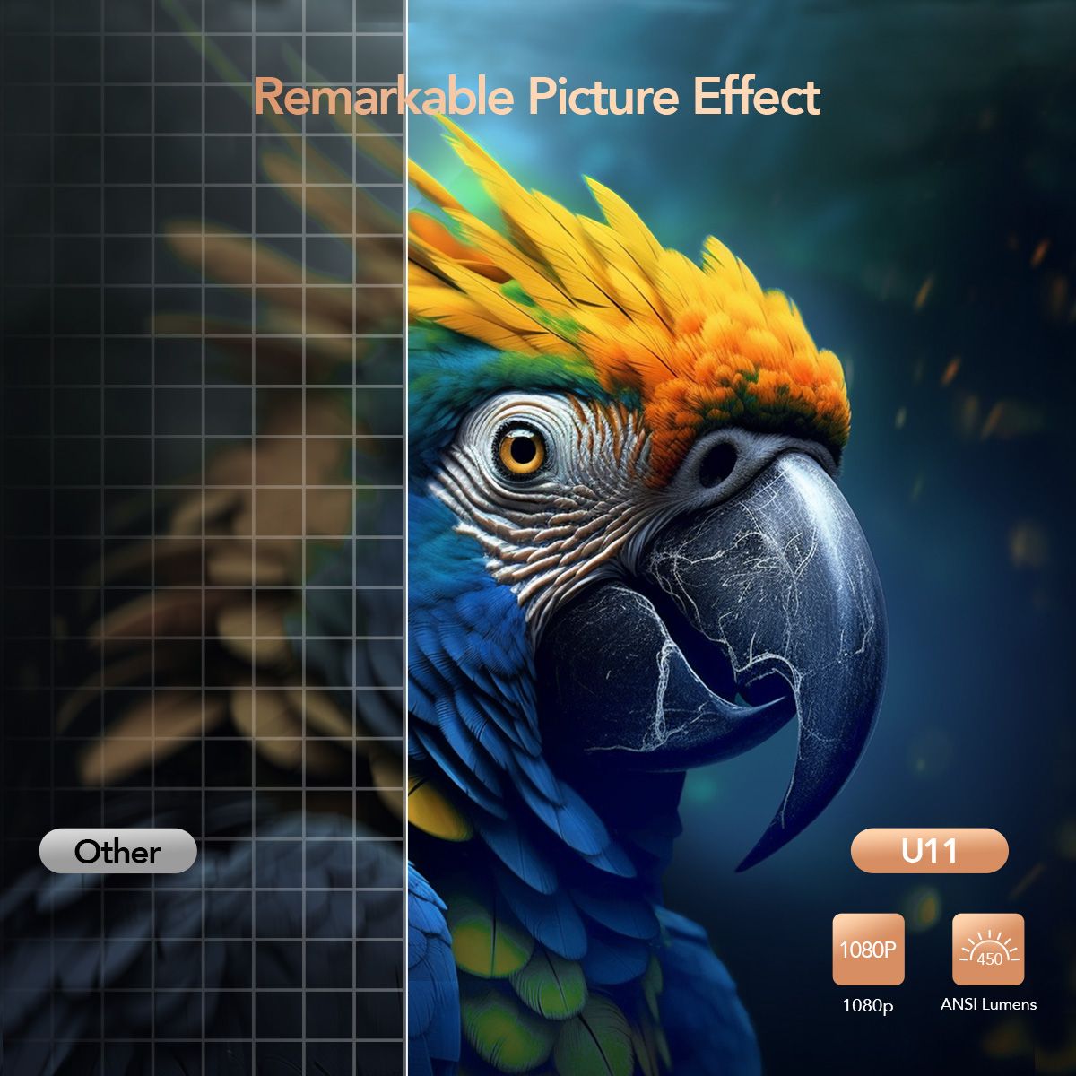 Yaber U11 гарантує бездоганне зображення та інноваційні пилозахисні технології. Навіть якщо проєктор часто переміщається або використовується на відкритому повітрі, спеціальна система захищає його від проникнення пилу та зберігає чистоту оптики для стабільної роботи вентиляції. Результат — завжди яскраві кольори, чіткість зображення та ефективне охолодження, яке працює бездоганно, навіть після декількох років активного користування проєктором. Пил не стане на заваді вашому перегляду — тільки бездоганна якість картинки!