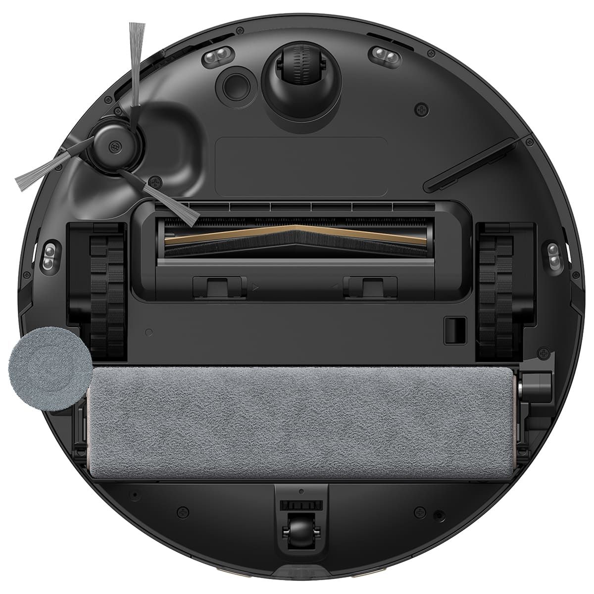 Комплектація:робот-пилосос миючий, мультифункціональна станція з автовивантаженням сміття, вертикальний валик для миття підлоги, бічна насадка для миття підлоги, бічна щітка, кабель живлення, подовжувальна пластина рампи, модуль для вологого прибирання, щітка з ножами для зрізання волосся, змінний мішок, картридж із миючим засобом, інструмент для чищення пристрою, інструкція користувача, гарантійний талон