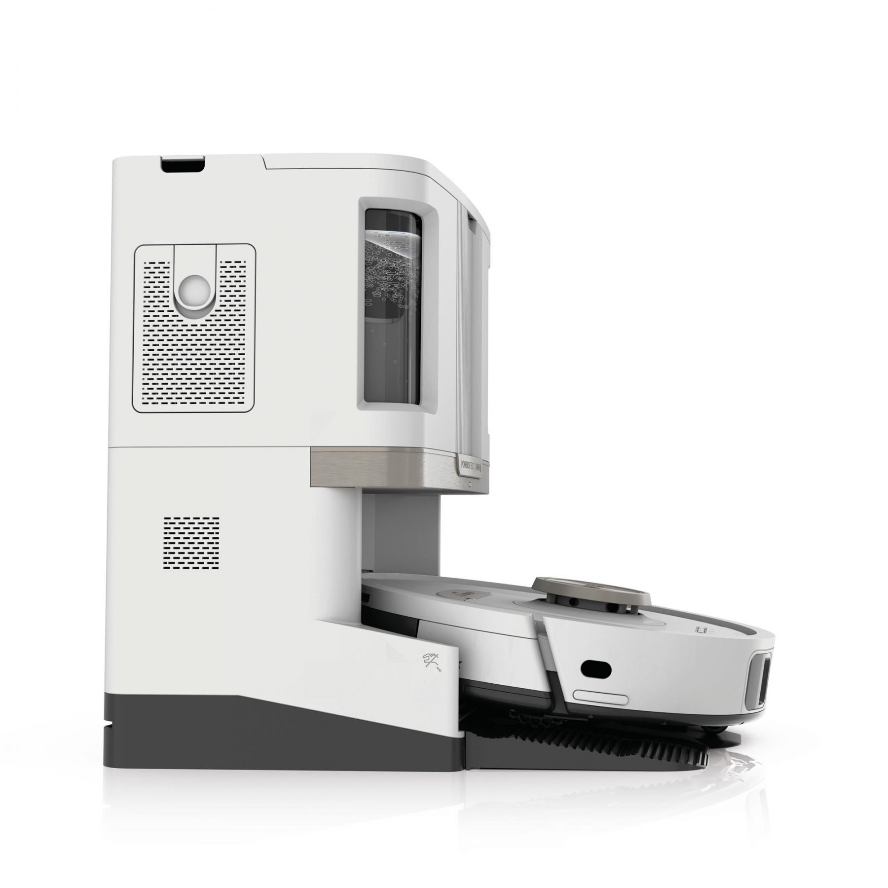 Після кожного циклу робот повертається на базу, яка автоматично очищує його внутрішній контейнер без мішка. База здатна зберігати сміття до 60 днів, що зменшує потребу в ручному очищенні.