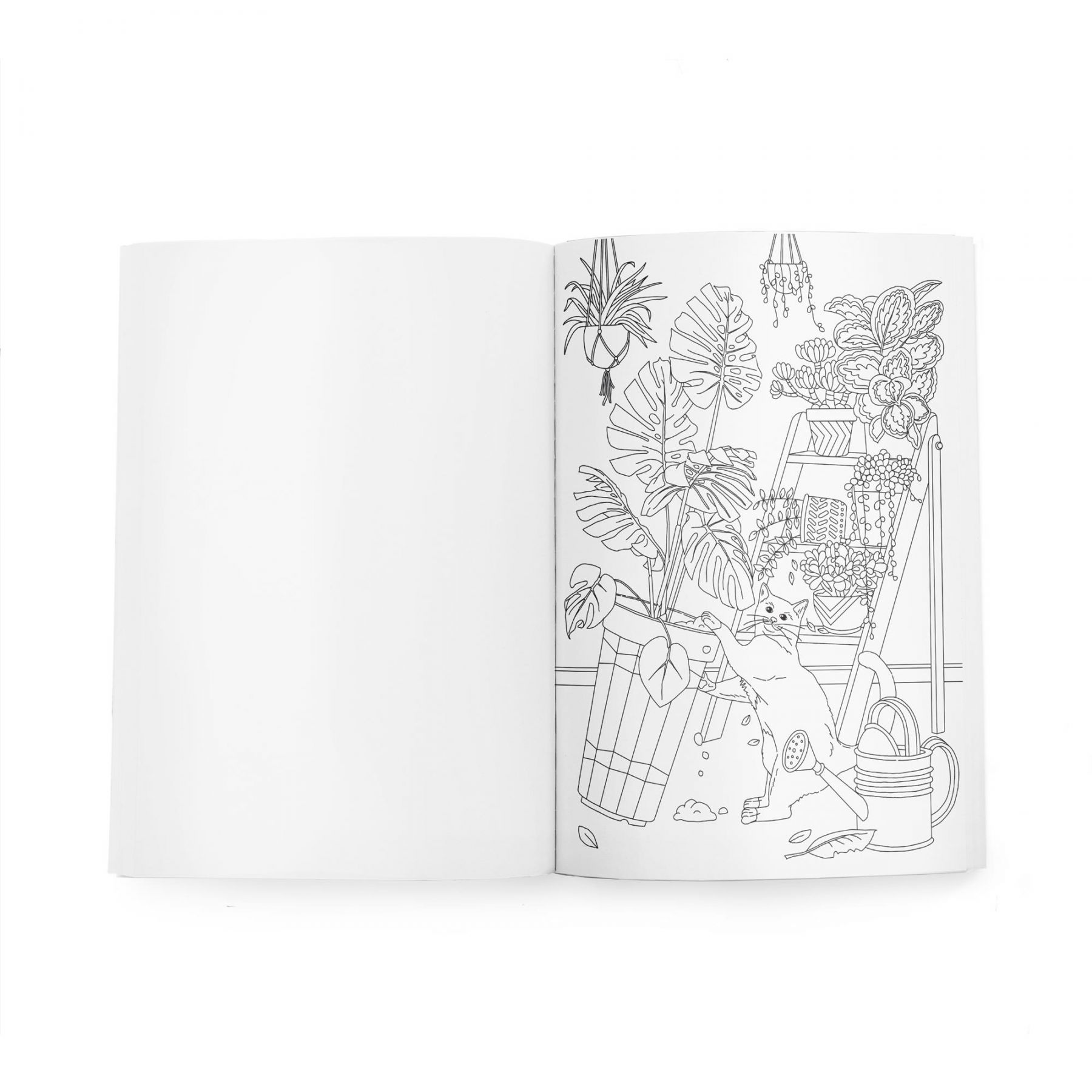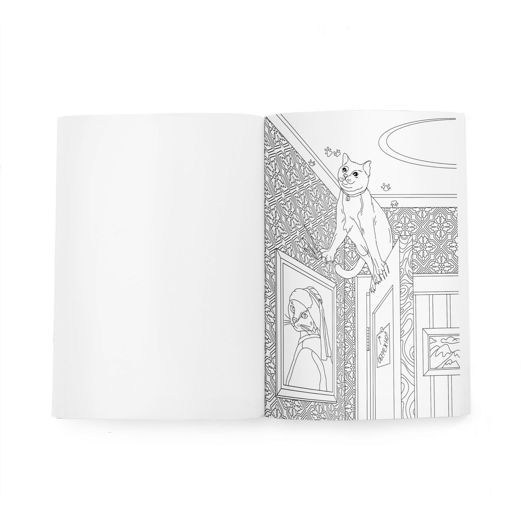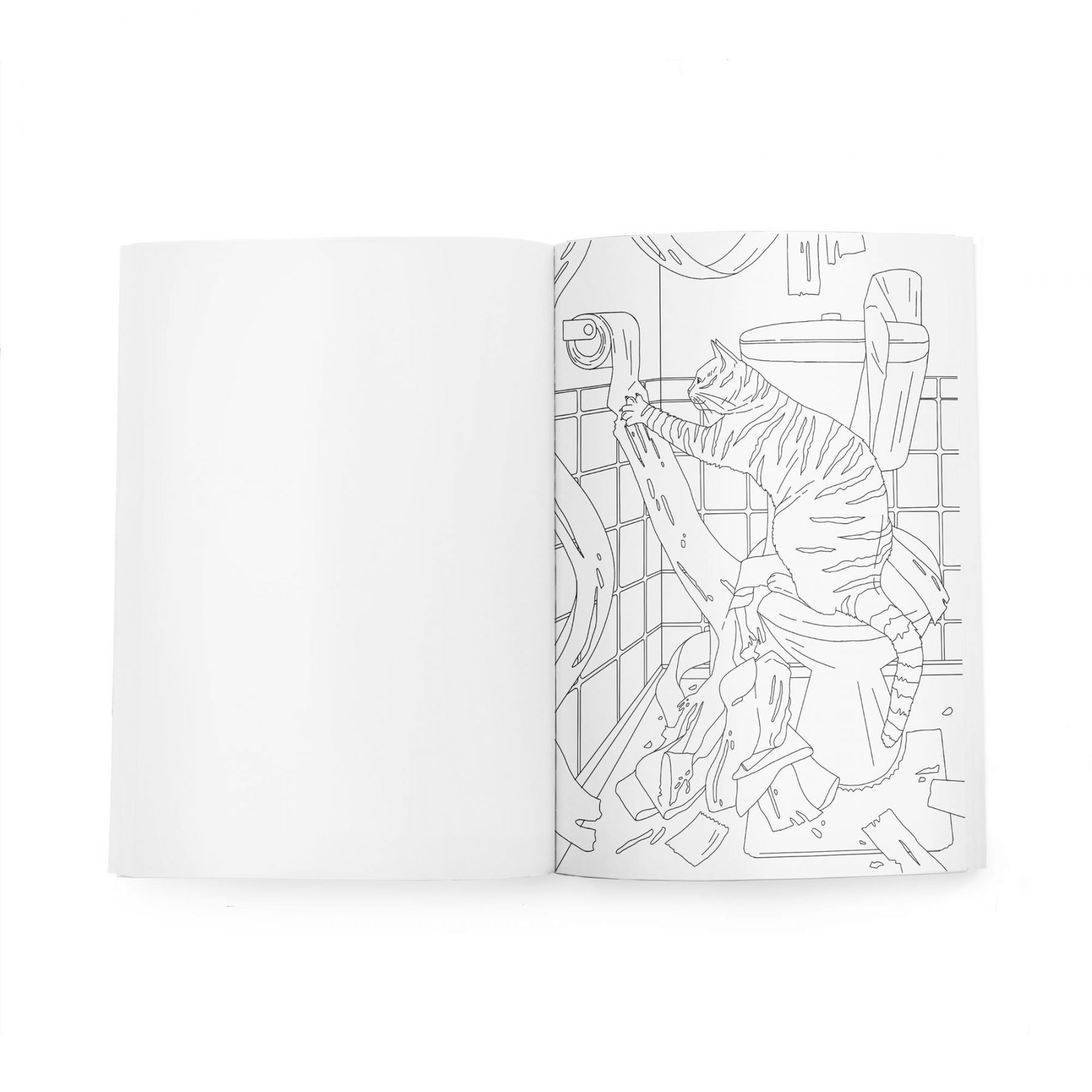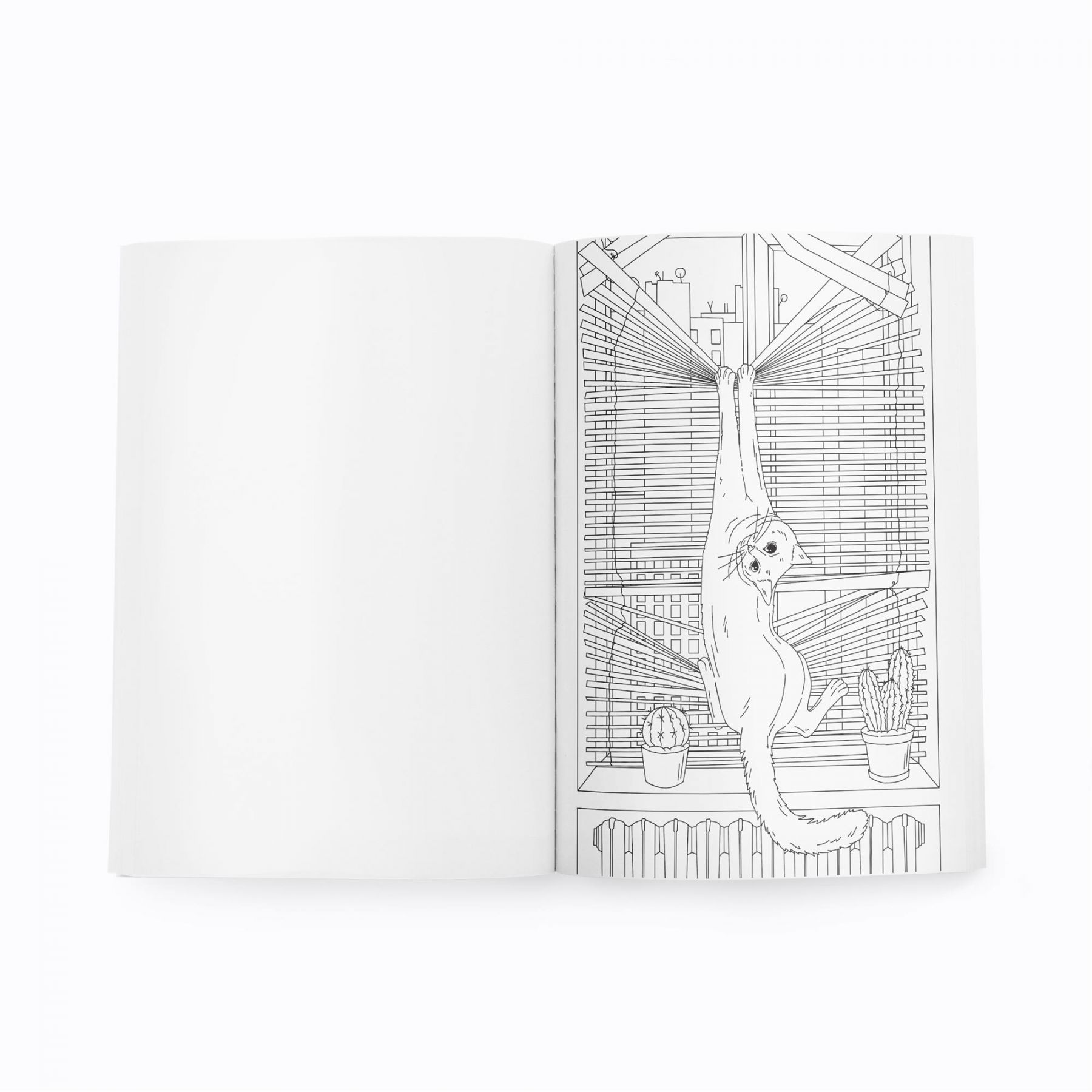 Розмальовка «Пригоди пухнастих бешкетників» — 16 ілюстрацій про те, чим наповнені неймовірно завантажені котячі будні. Розмальовуйте та шукайте знайомі сюжети.