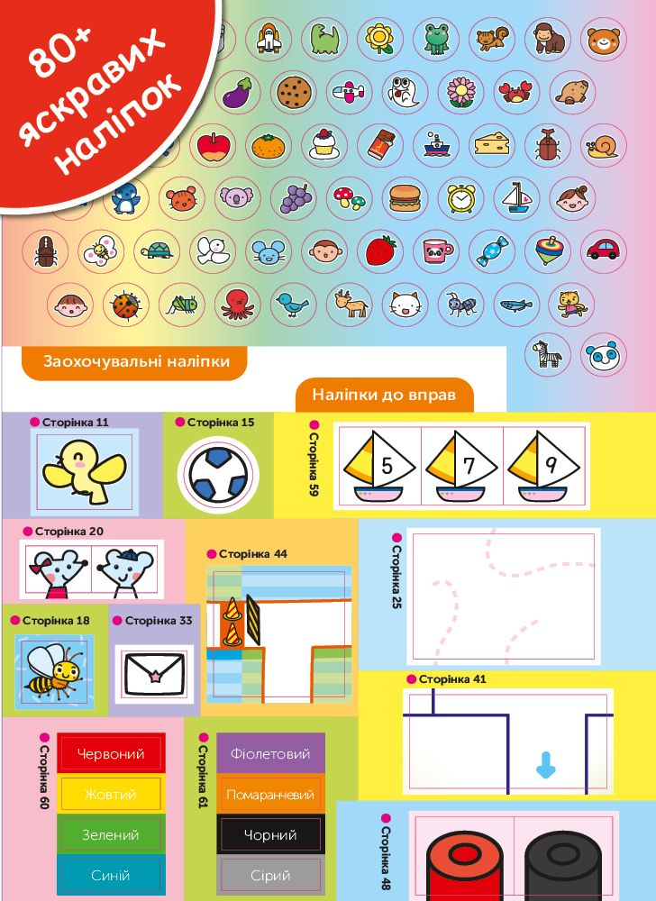 Працюючи з цією книжкою, дитина попрактикується наводити лінії і контури, розфарбовувати, з’єднувати крапку за крапкою, опанує ігри з числами, проходження лабіринтів. Веселі вправи легко розвинуть уважність, дрібну моторику і підготують до школи!