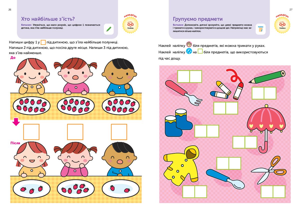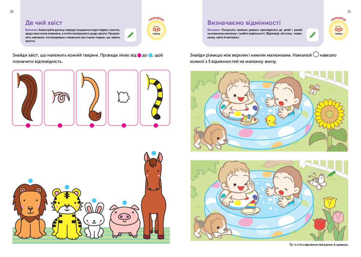 Працюючи з цією книжкою, ваш малюк попрактикується складати пазли, порівнювати предмети, знаходити спільне й відмінне, бачити характерні ознаки предметів. Веселі вправи допоможуть легко розвинути логічне і творче мислення та розширити словниковий запас!