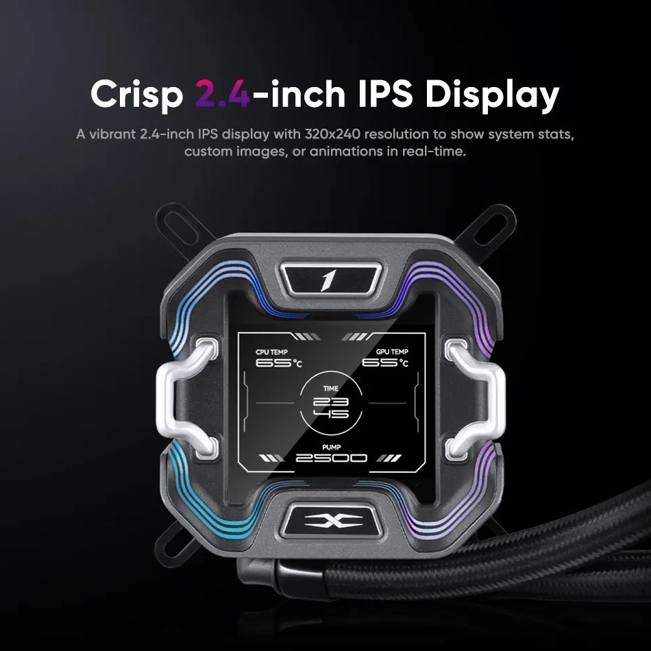Чіткий яскравий 2.4-дюймовий IPS-дисплей із роздільною здатністю 320x240 для відображення системної статистики, спеціальних зображень або анімації в реальному часі.