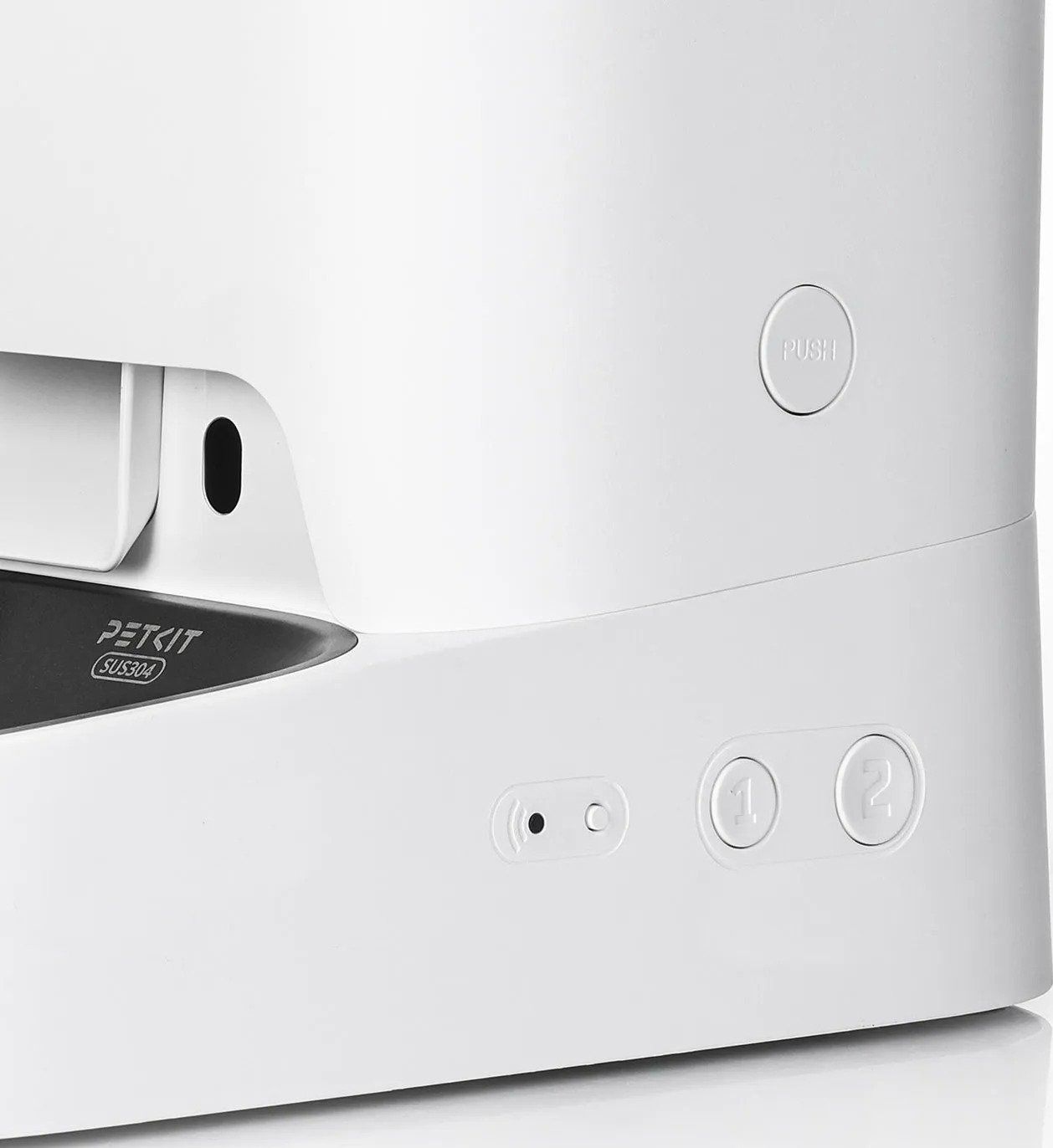 Миска годівниці виконана з високоякісної нержавіючої сталі SUS 304, а корпус і бак для корму з міцного пластику.