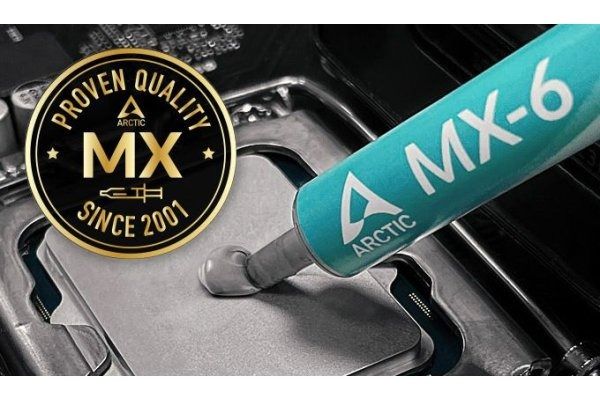 ARCTIC MX-6 - це термопаста на основі вуглецевого наповнювача, яка досягає максимальної продуктивності без вигоряння безпосередньо після нанесення та розподілу. При цьому вона досягає максимальних показників без використання будь-яких дорогих інгредієнтів, таких як діамантовий пил або різні частинки дорогоцінних металів. Силіконовий гель, що використовується як носій, забезпечує оптимальне розподілення, яке досягається за рахунок рівномірного контактного тиску, наприклад, при установці радіатора.