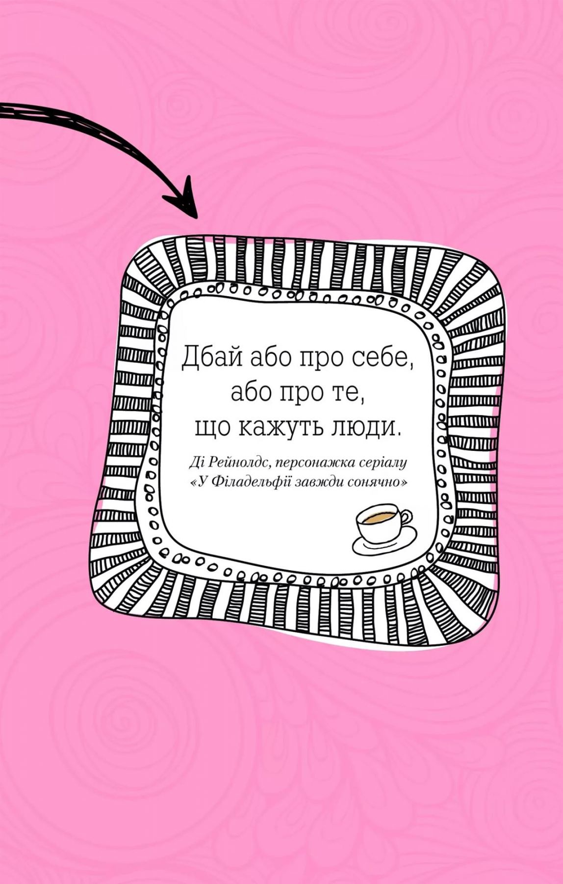 Кожна сторінка цього натхненно-зухвалого нотатника надає можливість відшукати нові джерела радості та осмислити все те, що відбувалося останнім часом. З грубим, дотепним слівцем і невичерпним креативом у тексті, видання стає безпечним простором для самовираження та фокусування на добробуті. Навіть візуальний компонент книжки надихає зайнятися емоційним розвантаженням і проявити належну уважність до власного стану.