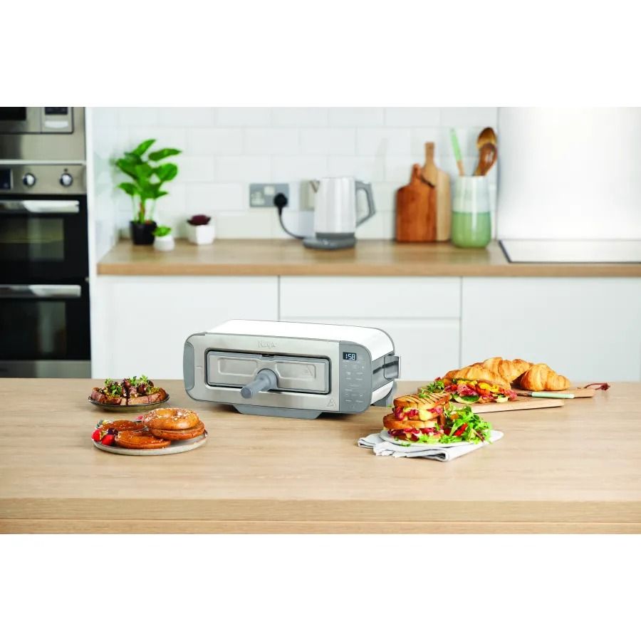 Відчуйте максимальну простоту приготування сніданків! Поки ви збираєтеся на роботу, пристрій за кілька хвилин готує хрумкі тости, м’які бейгли та інші страви з хлібом. Потужність 2400 Вт та діапазон температур 0-205 °C Ninja Foodi 3-in-1 прискорюють приготування. Перемикайтеся між трьома режимами: тостер, гриль та паніні прес. Вам не потрібно купувати окремі пристрої для підсмажування хліба, запікання м’яса або приготування гарячих бутербродів - один прилад справляється з усіма завданнями.