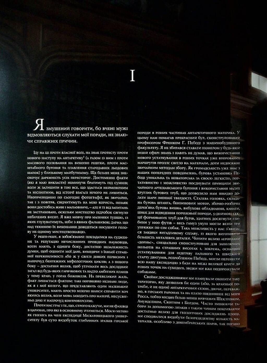 Двома роками раніше кораблі, зафрахтовані Міскатоніцьким університетом, висадилися на замерзлому континенті на початку антарктичного літа, і група з чотирьох професорів та шістнадцяти студентів негайно взялася до роботи. Біолог експедиції, професор Лейк, вирушив разом із кількома членами команди на пошуки перспективних слідів скам’янілостей. Через кілька днів він по радіо повідомив про знахідку дивовижних зразків невідомих прадавніх видів, а потім, після жахливої бурі, зв’язок повністю припинився. Зрозумівши найгірше, Даєр наступного дня вирушив їм на допомогу.