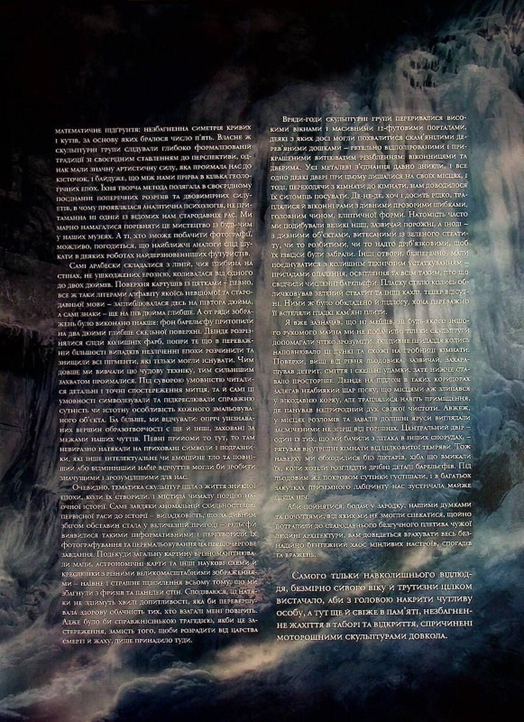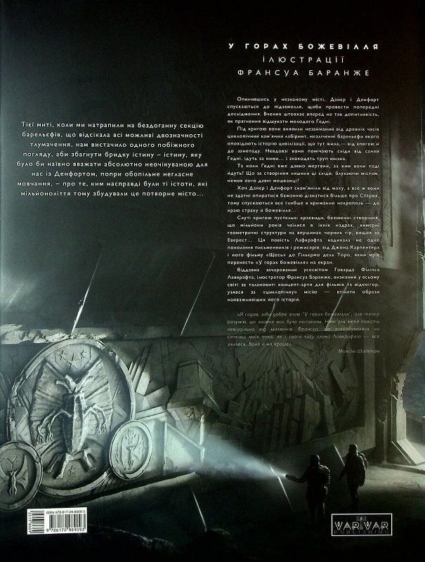 Друга частина класичного твору Говарда Філіпса Лавкрафта в неперевершеному оформленні! Від письменника, який вважається одним із найпотужніших авторів у жанрі жахів. Моторошна історія про невимовні жахи, що переховує льодяна пустка Антарктиди. Поверніться до останніх днів експедиції Дайєра в далеких антарктичних пустощах.