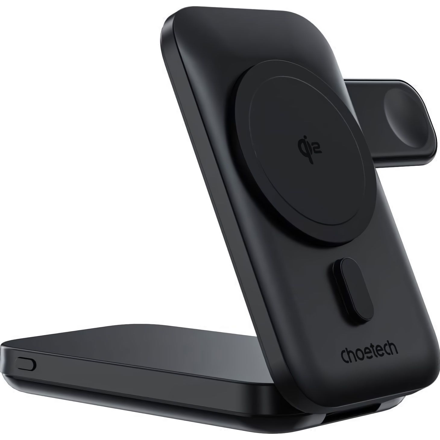 Бездротовий зарядний пристрій Choetech Qi2 3in1 Magnetic Charger Holder – це інноваційне рішення для одночасної зарядки кількох пристроїв. Завдяки вбудованому акумулятору ємністю 10 000 мАг, він дозволяє заряджати до трьох пристроїв одночасно без використання дротів. Смартфон можна заряджати з потужністю до 15 Вт, а Apple Watch, Samsung Watch або AirPods отримують стабільну потужність по 3 Вт. Усі пристрої зручно розміщуються на спеціальній підставці, забезпечуючи акуратну та безпечну зарядку