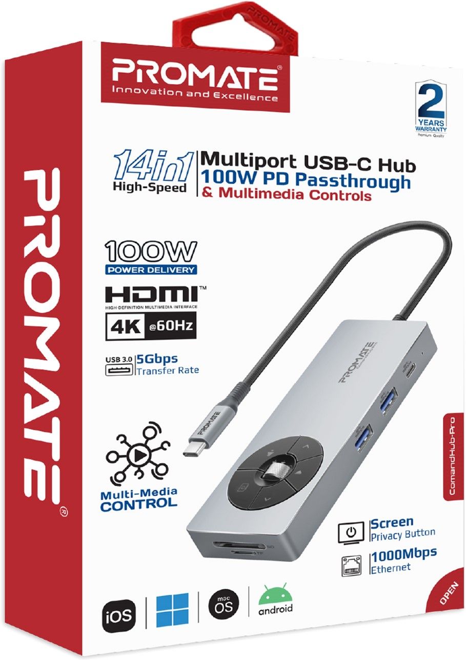 ComandHub-Pro - Type-C хаб від Promate. Широкий функціонал і максимальна стабільність в портативному та стильному корпусі з першокласних матеріалів. Ґаджет об’єднав в собі все найкраще з хабів на сьогоднішній день!