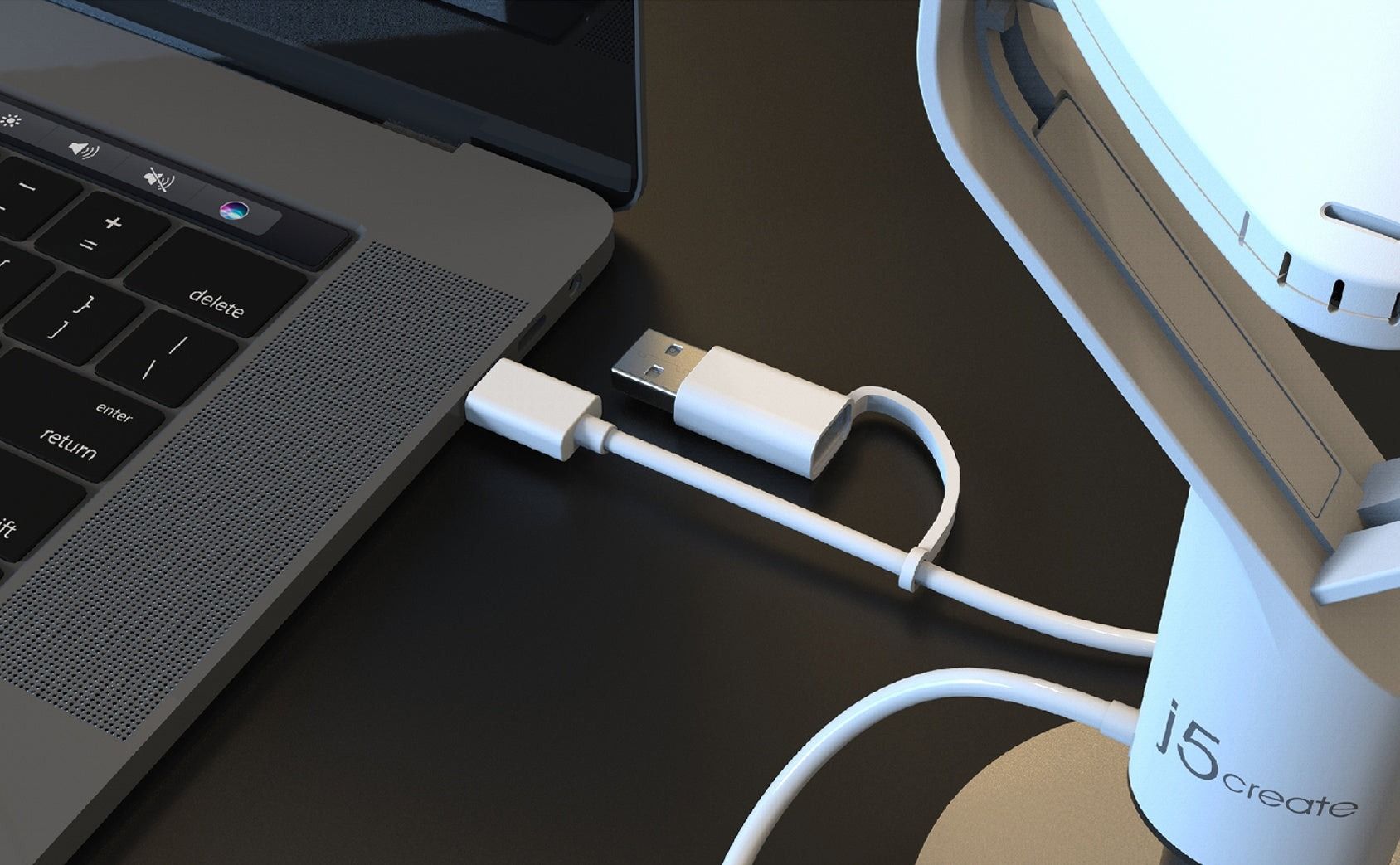 Веб-камера 360° All Around Webcam оснащена кабелем USB-C і роз’ємом USB Type-A, що дозволяє використовувати її як зі старими, так і з новими пристроями.