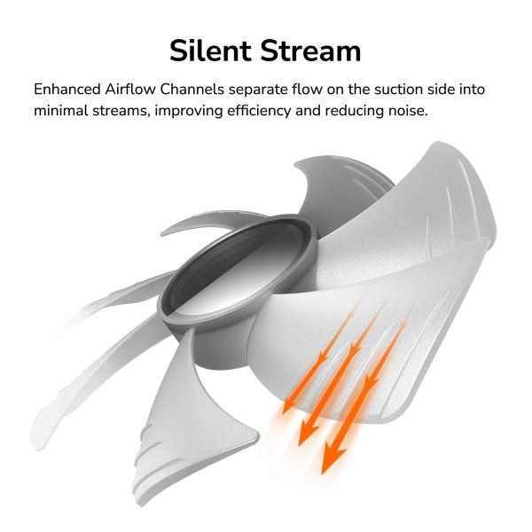 Покращені канали повітряного потоку поділяють потік сторони втягування на мінімальні струмені, підвищуючи ефективність та знижуючи шум.