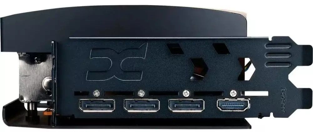 Набір із 7 нікельованих мідних теплових трубок розташований щільно над друкованою платою, щоб швидше й ефективніше переносити тепло від графічного процесора та пам’яті VRAM до системи охолодження.