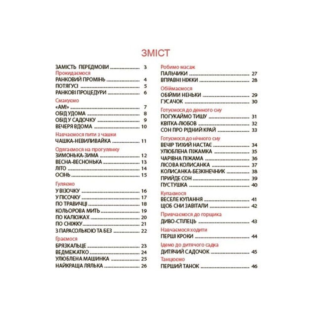 «Віршенята на щодень» — перші примовки й потішки для малюків, які допоможуть легко прокидатися, з апетитом їсти, залюбки вдягатися на прогулянку, захопливо гратися, спілкуватися та досліджувати довкілля, а колисаночки — швидко засинати. Ба більше: віршенята мотивуватимуть малюка навчитися пити із чашки, користуватися горщиком, засинати без пустушки й швидше адаптуватися до дитячого садка!«Віршенята на щодень» — це незабутні миті теплого спілкування батьків із малюками. Нехай цих моментів буде якнайбільше!