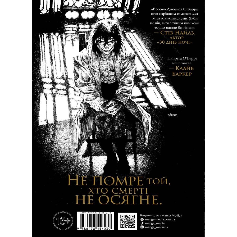 «Ворон» Джеймса О’Барра — це графічний роман, що втілює в собі поєднання тем трагедії, помсти та відродження. Головний герой, Ерік Дрейвен, повертається з мертвих, аби помститися за жорстоке вбивство його нареченої. Змучений безправ’ям та злочинністю, що керує містом, він стає «Вороном» — символом правосуддя, який доносить світло надії в найтемніші закутки. Глибокий сюжет, поєднаний з емоційним малюнком, робить цей роман неперевершеним і вражаючим твором, покликаним лишити слід у читацькому серці.
