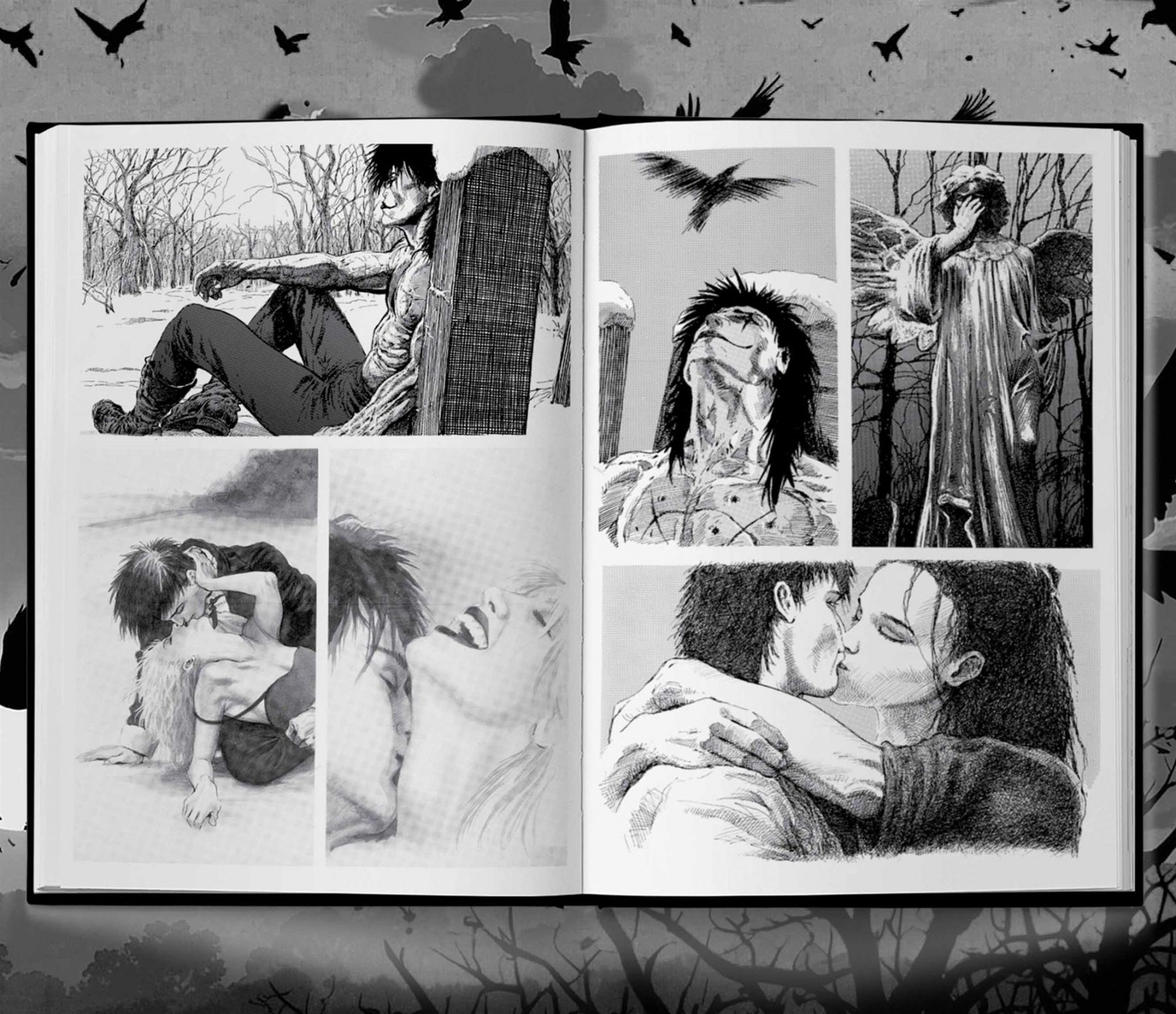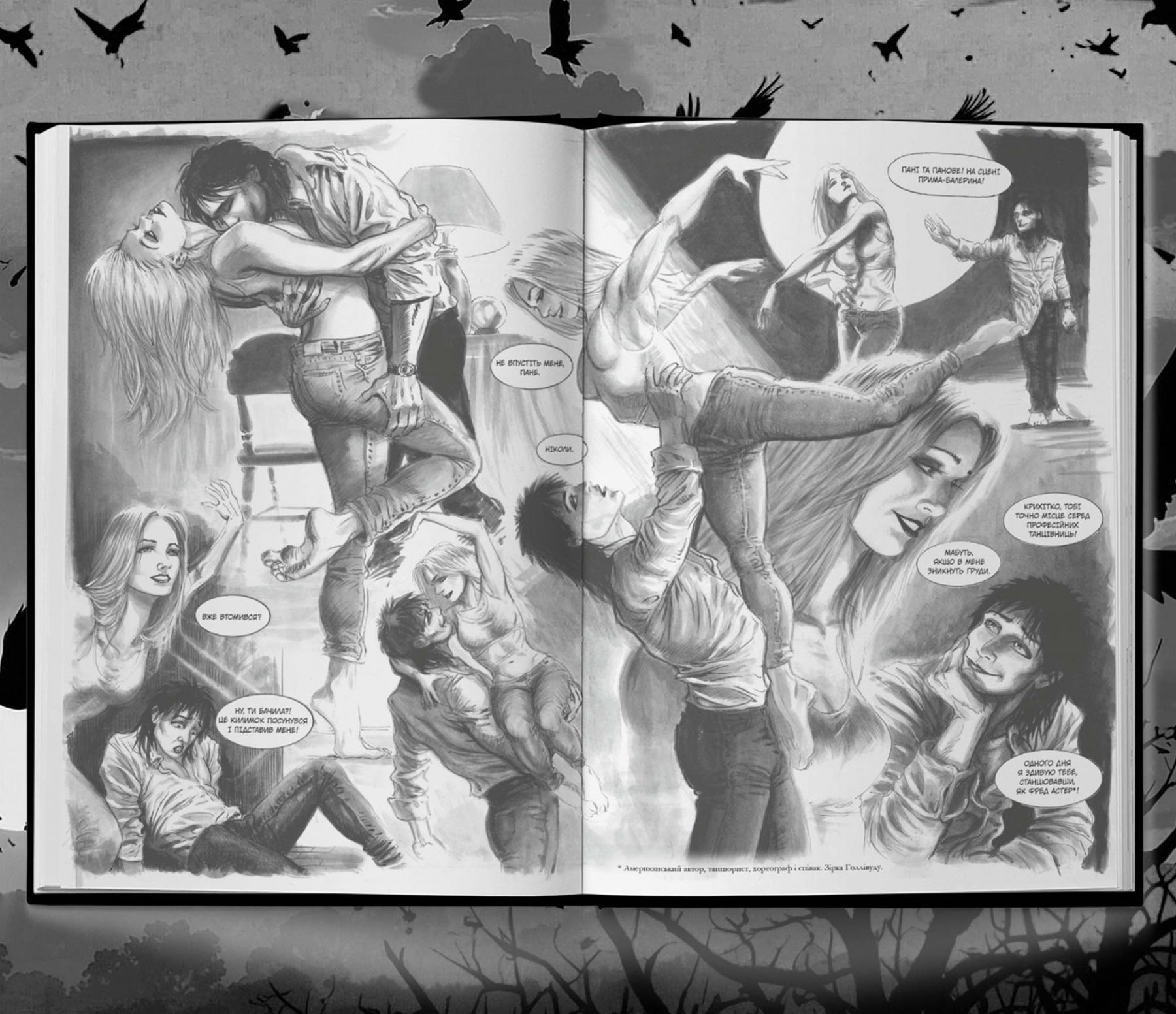 О’Барр майстерно вплітає елементи містики та філософії смерті, розкриваючи внутрішній світ героя через його зустрічі з загадковим вороном — птахом, що стає символом духовної трансформації та переходу із темряви до світла, від смерті до відродження.