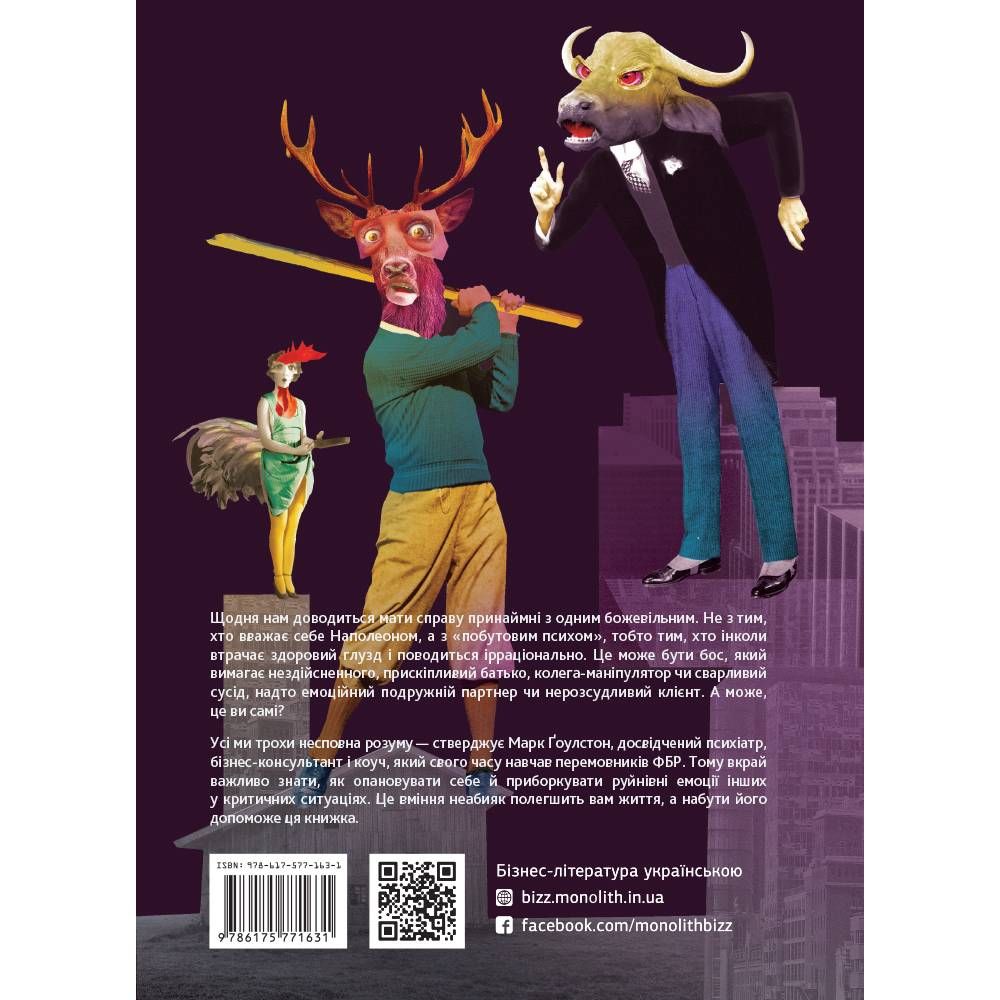 Кожен день нам доводиться мати справу принаймні з одним божевільним. Не з тим, хто вважає себе Наполеоном, а з «побутовим психом», тобто тим, хто інколи втрачає здоровий глузд і поводиться ірраціонально. Це може бути бос, який вимагає нездійсненного, прискіпливий батько, колега-маніпулятор чи сварливий сусід, надто емоційний подружній партнер чи нерозсудливий клієнт. А може, це ви самі?