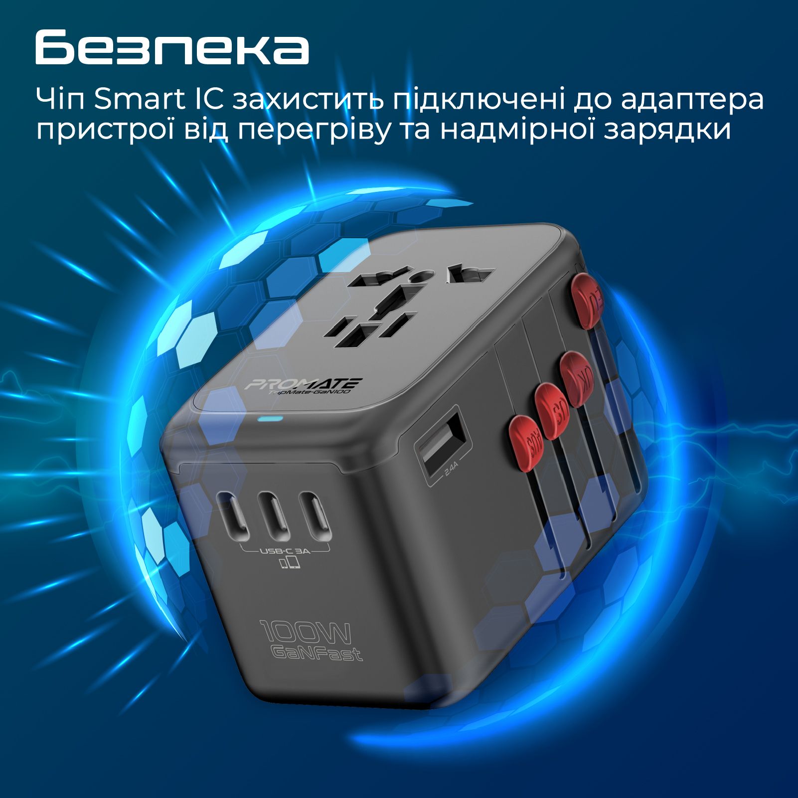 TripMate-GaN100 – нова модель з лінійки мережевих перехідників TripMate-GaN від Promate. Більше потужності для швидкого заряджання твоїх девайсів.