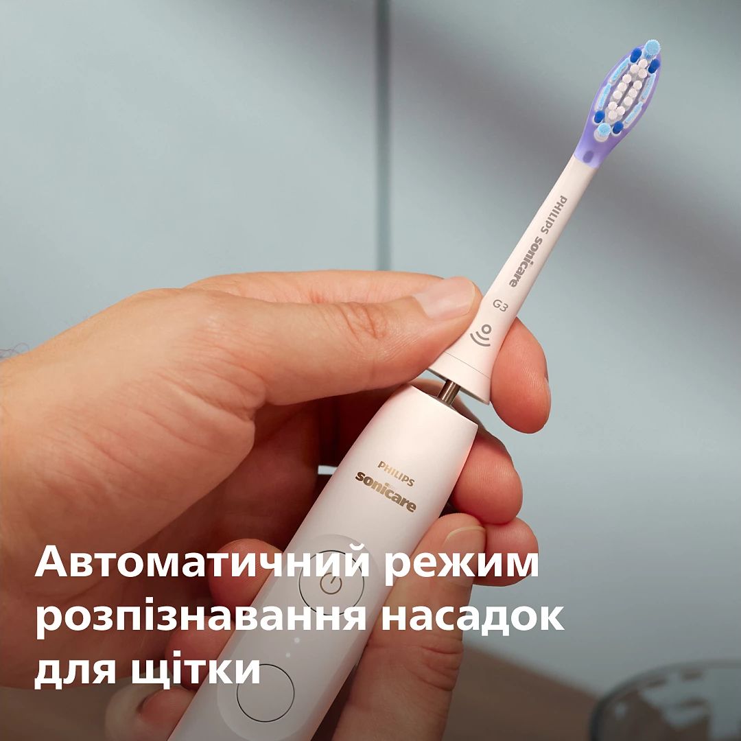 Електрична зубна щітка використовує технологію наступного покоління Sonicare, яка забезпечує найнадійніше й регулярне чищення зубів для щоразу чудових результатів. Двигун автоматично регулює потужність, тому ефективність не знижується, коли ви досягаєте важкодоступних ділянок. Насолоджуйтеся делікатним, але ефективним чищенням зубів і ясен завдяки 62000 рухів щетинок на хвилину. Функція Sonicare Fluid Action допомагає щетинкам чистити, проганяючи рідину глибоко між зубами та вздовж лінії ясен.
