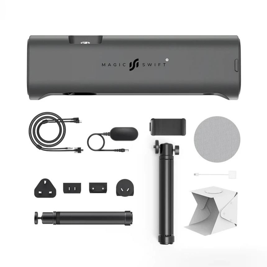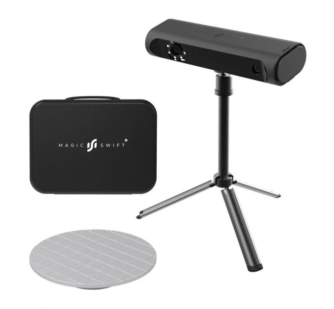 Входить до комплекту:3D-сканер Magic Swift Plus х 1, шнур живлення х 1, кабель даних х 1, штатив х 1, базовий поворотний стіл х 1, лайтбокс х 1