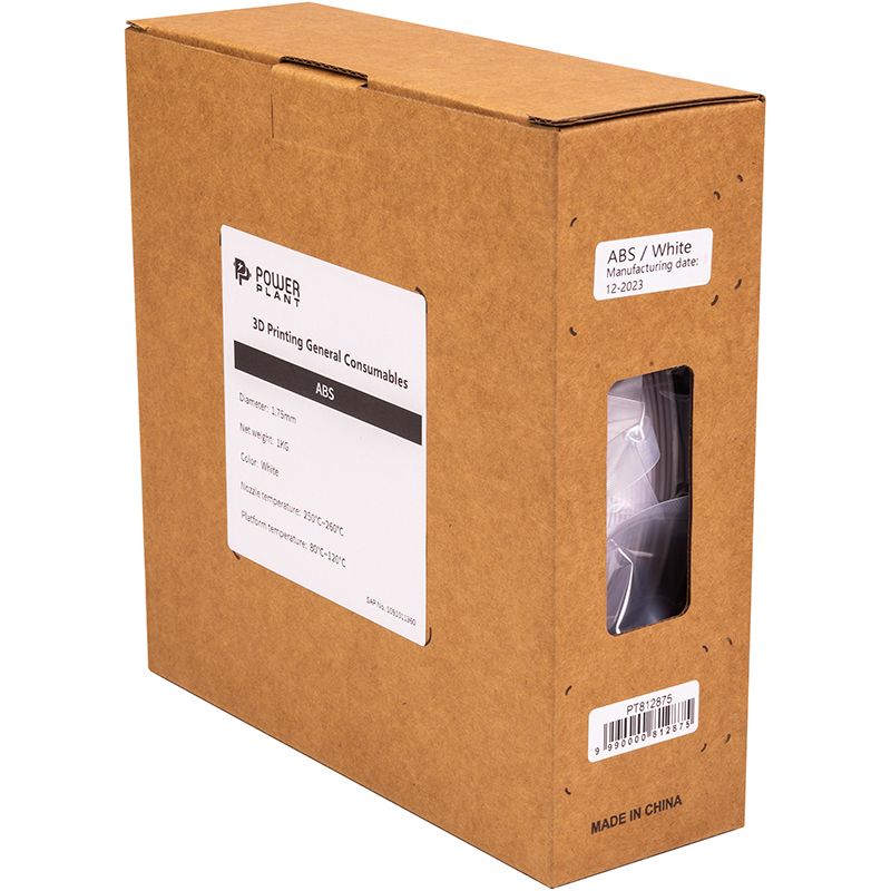 ABS-пластик PowerPlant Filament для 3D-принтера 1.75 мм 1 кг, білий (PT812875)