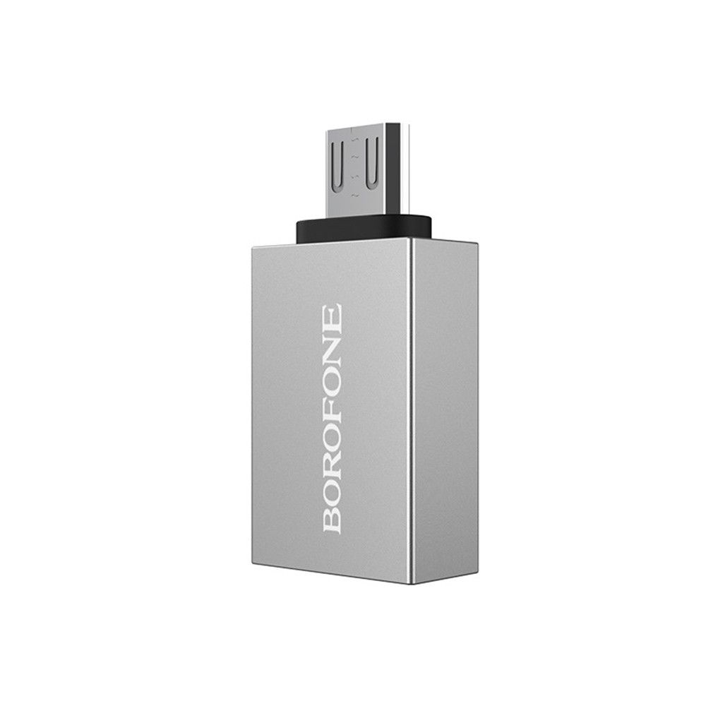 Адаптер Borofone BV2 USB - micro USB (F/M), сріблястий (BV2S)
