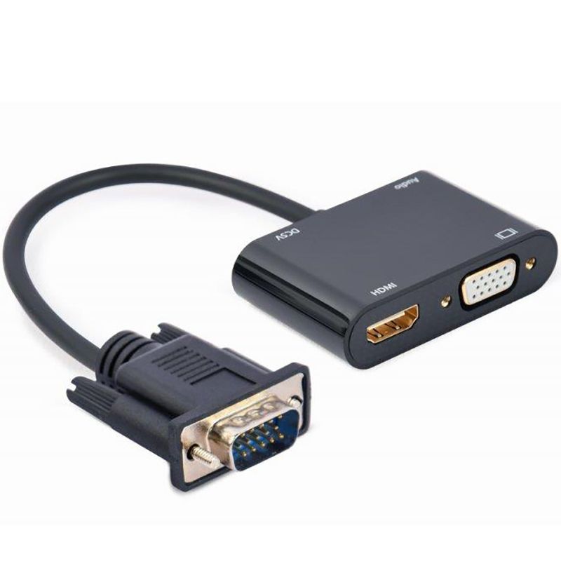 Адаптер Cablexpert VGA - HDMI+VGA (M/F), 0.15 м, Black (A-VGA-HDMI-02)