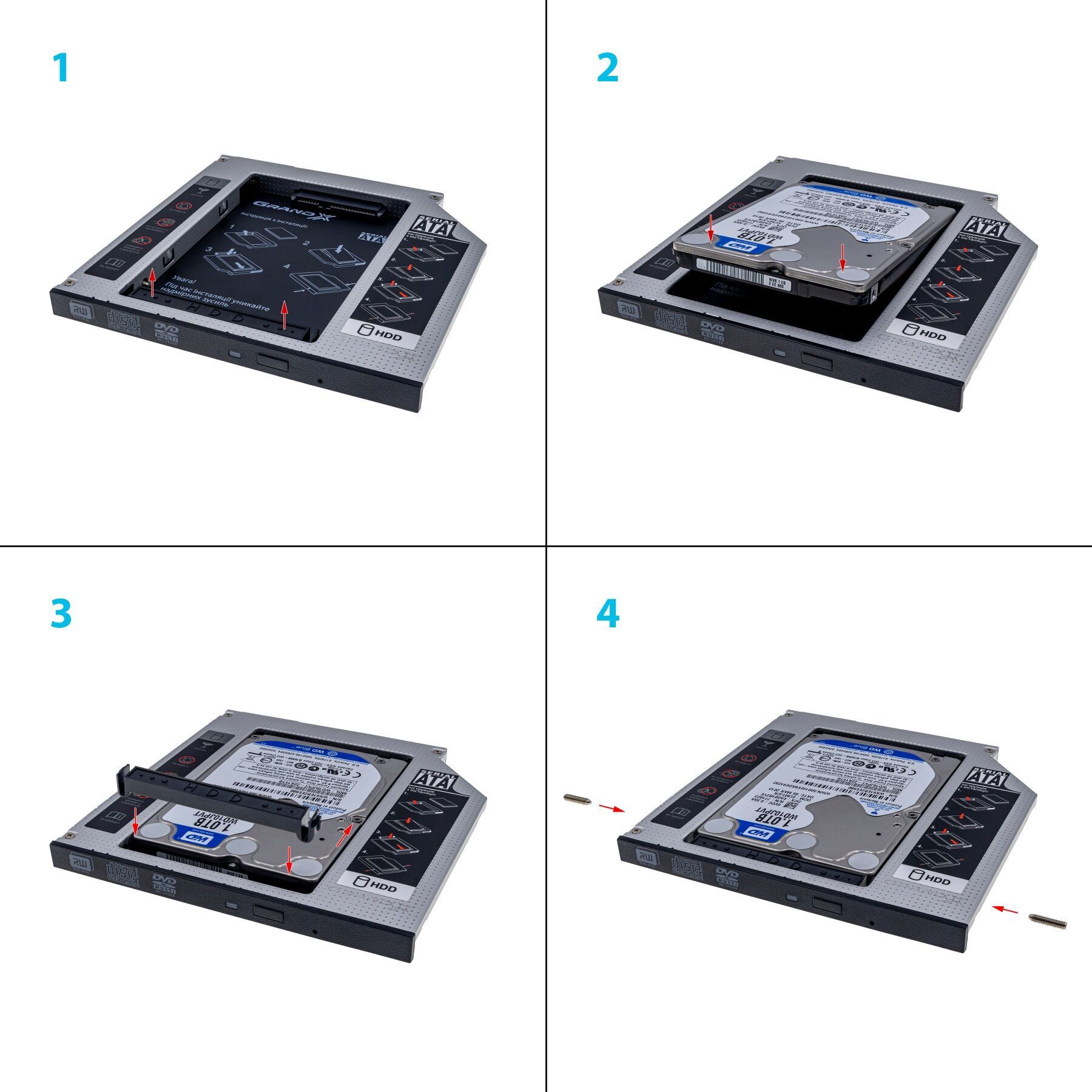 Адаптер призначений для підключення другого жорсткого диска (наприклад SSD) в ноутбук замість приводу CD / DVD / Blue Ray.
