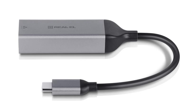 Адаптер REAL-EL CE-150 USB Type-C - RJ45 (M/F), 0.1 м, Black (EL123110004)