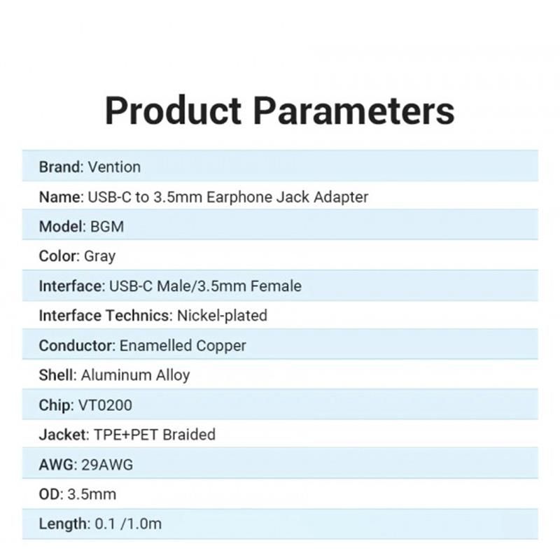 Цей адаптер Type-C-3.5мм від Vention дозволяє легко підключати улюблені навушники або гарнітури до сучасних пристроїв, які можуть не мати вбудованого аудіо роз’єму 3.5мм. Ви можете насолоджуватися чітким та якісним звуком, не обмежуючи себе у виборі аудіо пристроїв. Цей адаптер – надійний супутник для аудіофілів та любителів музики, завдяки якому ви завжди будете слідувати чудовому звуку, де б ви не були.