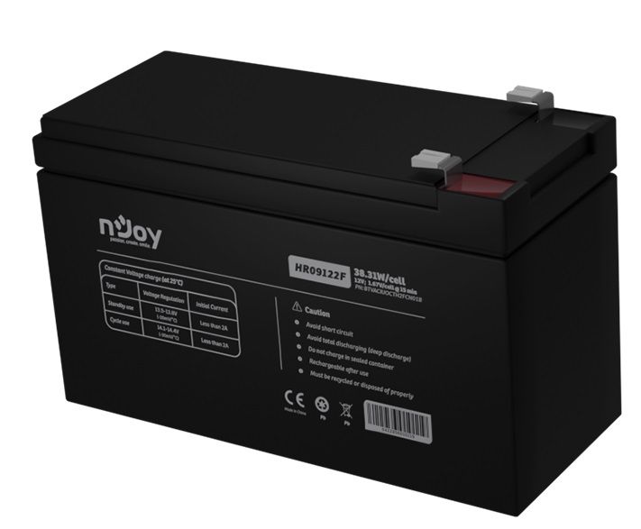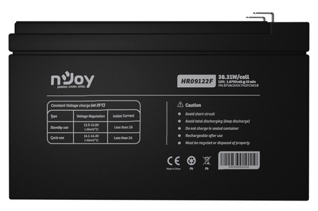 Герметичний акумулятор nJoy HR09122F забезпечує довгострокове і надійне якість. Вони повністю не вимагають обслуговування і мають низький саморозряд - всього 2% потужності, зниженою на місяць.