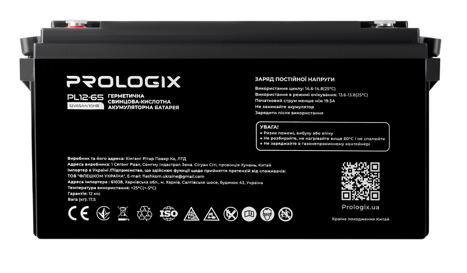 Акумуляторна батарея Prologix 12V 65AH (PL12-65) AGM