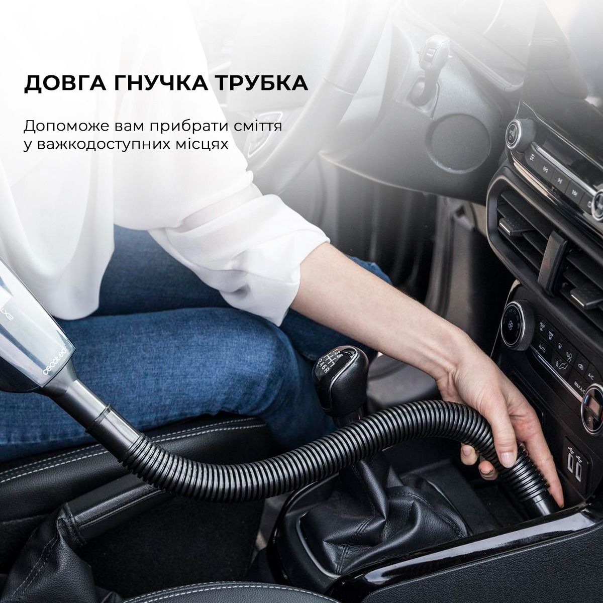 Ручний акумуляторний пилосос включає подовжену гнучку трубку, за допомогою якої ви можете пилососити місця, куди звичайний ручний пилосос не може дістати.
