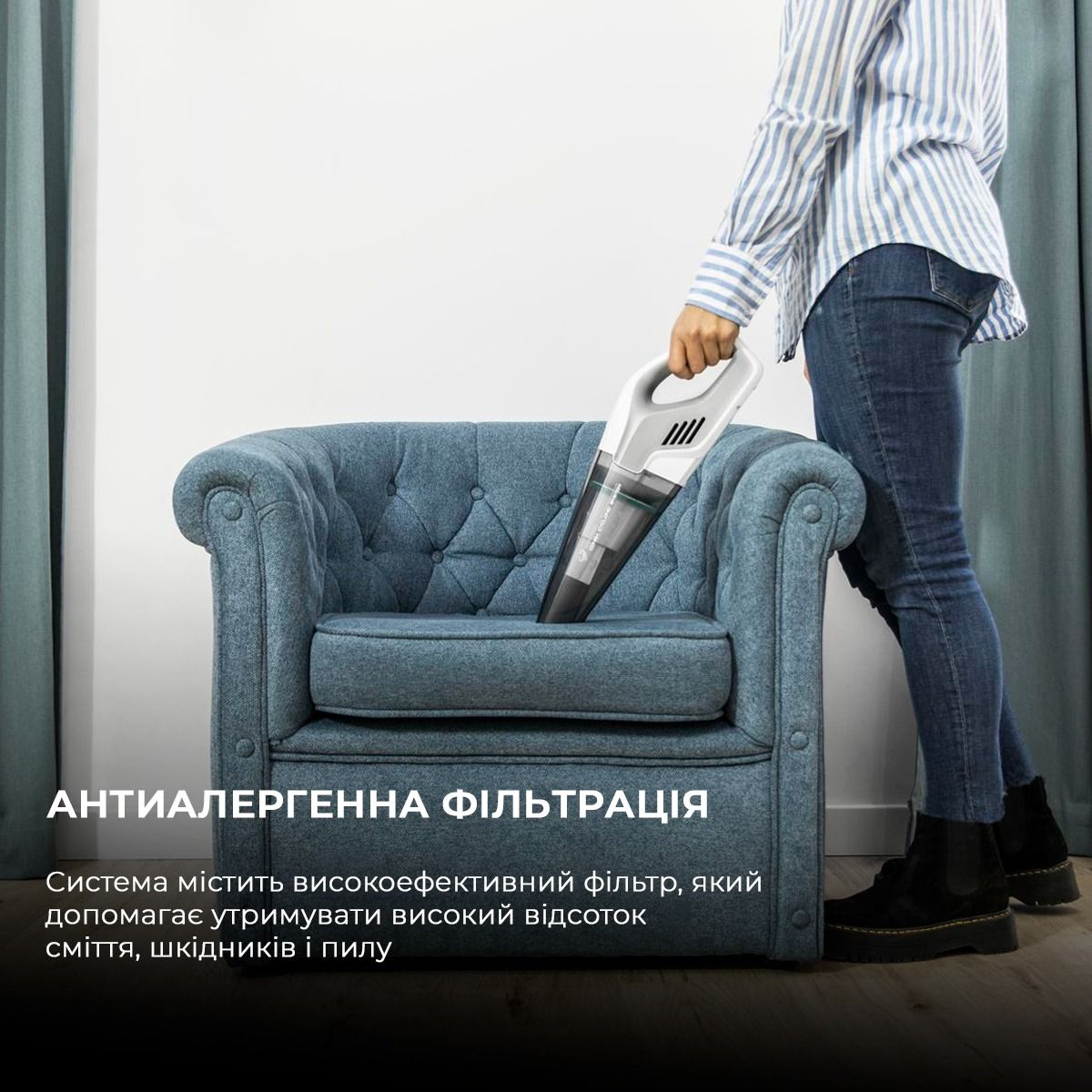Ручний пилосос оснащений потужним литий-ионным акумулятором з напругою 7,4 В, який подовжує термін служби пилососа в два рази. Він забезпечує відмінну автономність - 20 хвилин. Ви можете зручно пилососити великі поверхні.