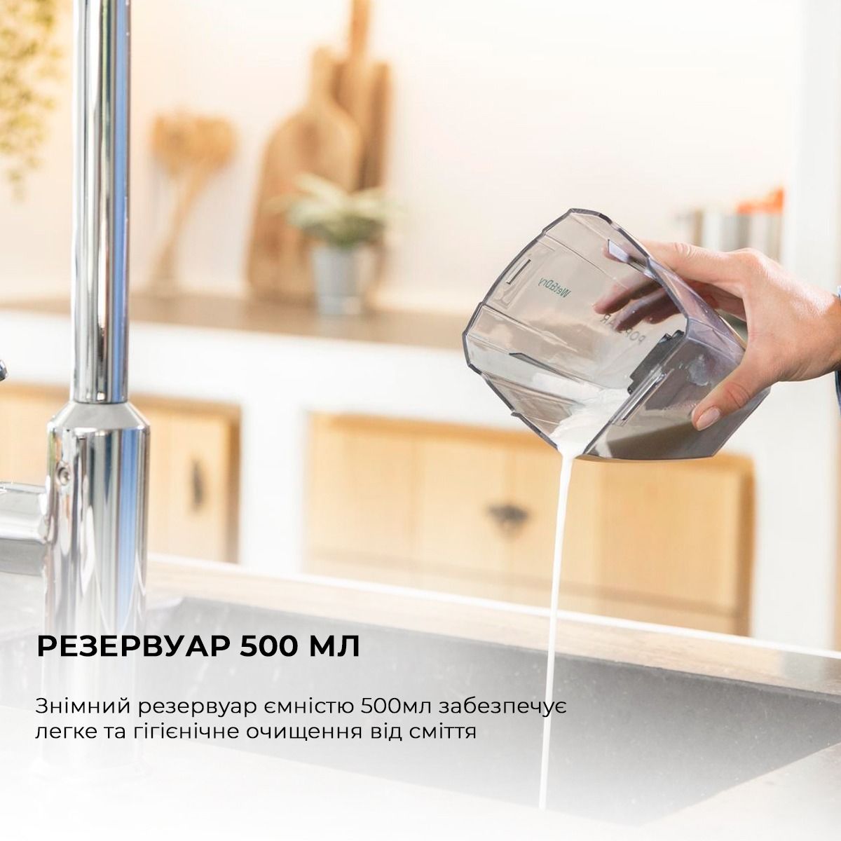 Завдяки резервуару об'ємом 500 мл вам не доведеться часто проводити очистку. Після заповнення контейнера ви зможете легко і екологічно його спорожнити, не контактуючи зі сміттям. Пилосос простий як в прибиранні, так і в догляді - насолоджуйтеся чистим результатом.