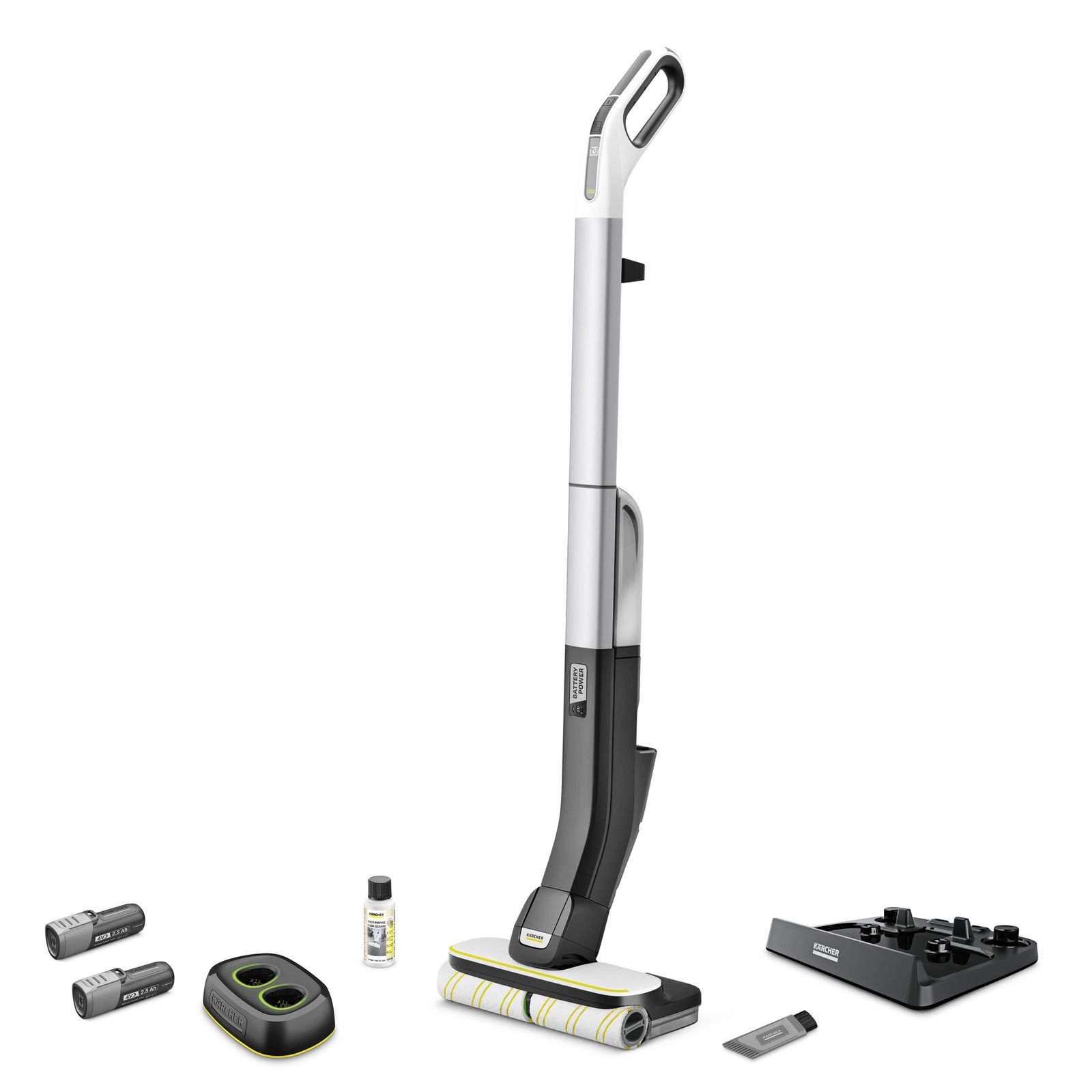 Входить до комплекту постачання:електрошвабра, акумулятори Battery Power 2,5 Ач (2 шт.), швидкозарядний пристрій Battery Power 4 В (1 шт.), пара роликів для очищення (жовтий), універсальний засіб для підлоги RM 536 (30 мл), паркувальна станція, що очищає, щітки, інструкція, гарантійний талон