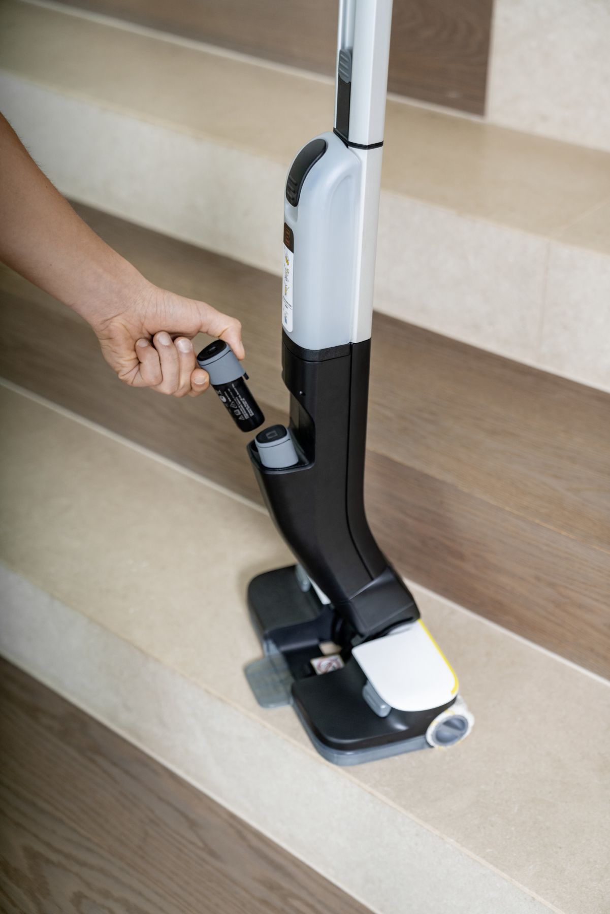 З очищувачем підлоги FC 4-4 вам більше не потрібно пилососити перед протиранням, і ви можете видаляти сухі та вологі щоденні забруднення за один крок. Завдяки тривалому часу роботи від акумулятора, що становить не більше 30 хвилин, можна легко прибирати площі до 90 квадратних метрів. Швидкий зарядний пристрій Duo, що входить до комплекту, дозволяє зарядити пристрій всього за 70 хвилин. Візуальний сигнал використовується для інформування про необхідність заповнення резервуару для свіжої води та спорожнення резервуару для брудної води. Після активації пристрою два ролики автоматично зволожуються водою із резервуару для прісної води. Об’єм води можна відрегулювати залежно від покриття для підлоги за допомогою двох режимів прибирання. FC 4-4 очищає навіть важкодоступні місця та легко збирає волосся. Прямий контакт із брудом виключено завдяки вбудованому та гігієнічному резервуару для брудної води, який можна зняти та очистити після використання пристрою. FC 4-4 стоїть окремо і може компактно зберігатися завдяки ручці, що знімається. Пристрій підходить для всіх твердих підлог. Змінні акумулятори Karcher Battery Power 4 Сумісні з усіма пристроями Karcher Battery Power 4 Ст.