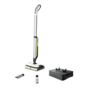 Безперервне зволоження роликових щіток водою з бачка для чистої води та одночасне збирання забруднень у бачок для брудної води. Прибирання без великих зусиль: не потрібно переносити відро, протирати підлогу шваброю і вручну вичавлювати ганчірку. Можливість машинного прання роликових щіток при температурі 60 °C. Електрошвабра FC 7 Cordless: Висока маневреність і стійкість у вертикальному положенні